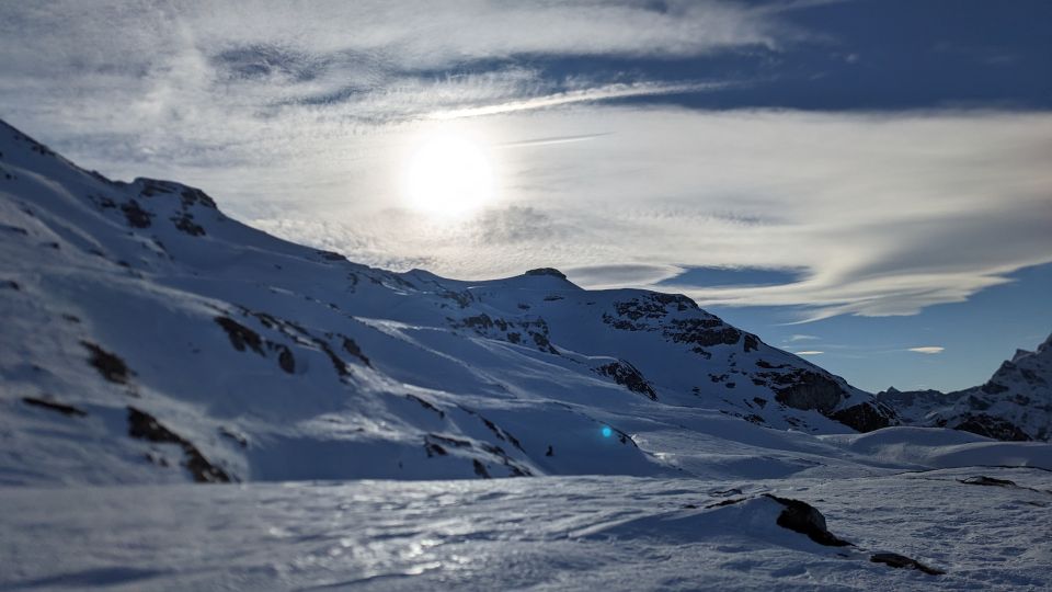 Mit Bike von Näfels-Mollis bis Mittelstation Skilift. Kann man machen, muss man aber nicht (mit Ski noch ab oberem Parkplatz möglich). Aufstieg problemlos, teilweise recht starker Wind. Skigenuss in der Abfahrt gab's wie erwartet nur beschränkt. Oben eher hart, am besten die sonnigen Expositionen mit weichem Schnee. Am Ende die glatt-eisige Piste (Lift nicht in Betrieb) mit Tourenbrettli, besser wäre ein Weltcupschliff. Immerhin aber kein Bruchharsch oder sonstige Knochenbrecher-Verhältnisse. Alles in allem machbar bis gut. Dem schönen Wetter und der grandiosen Stimmung sei Dank gibt's ein 'gut'.