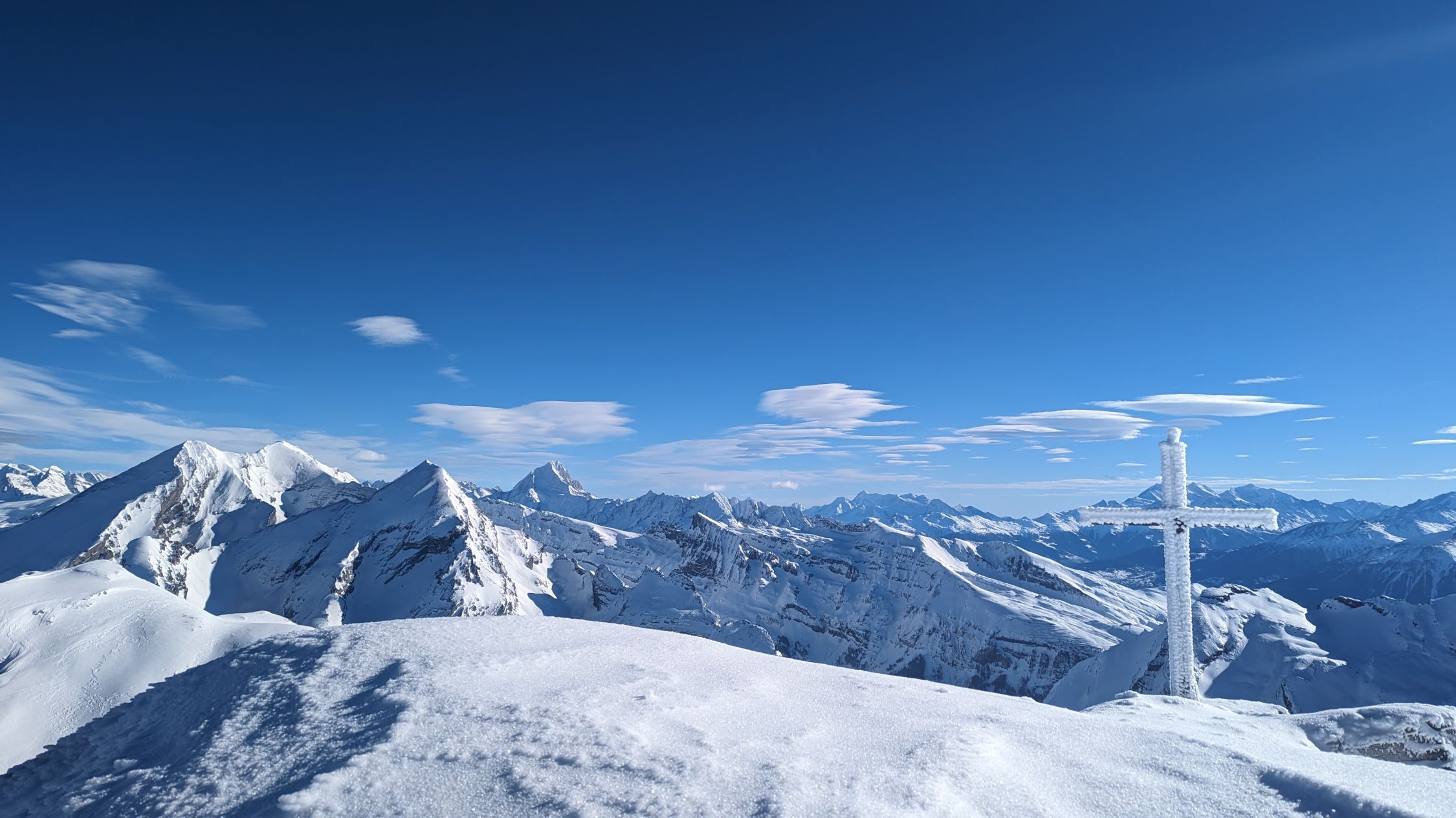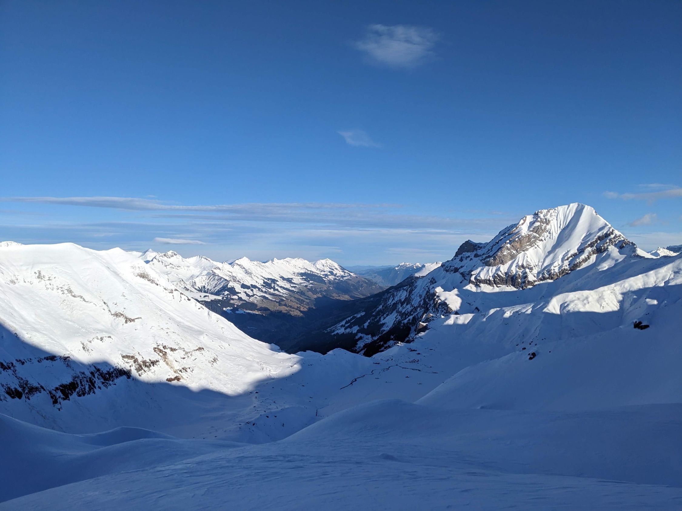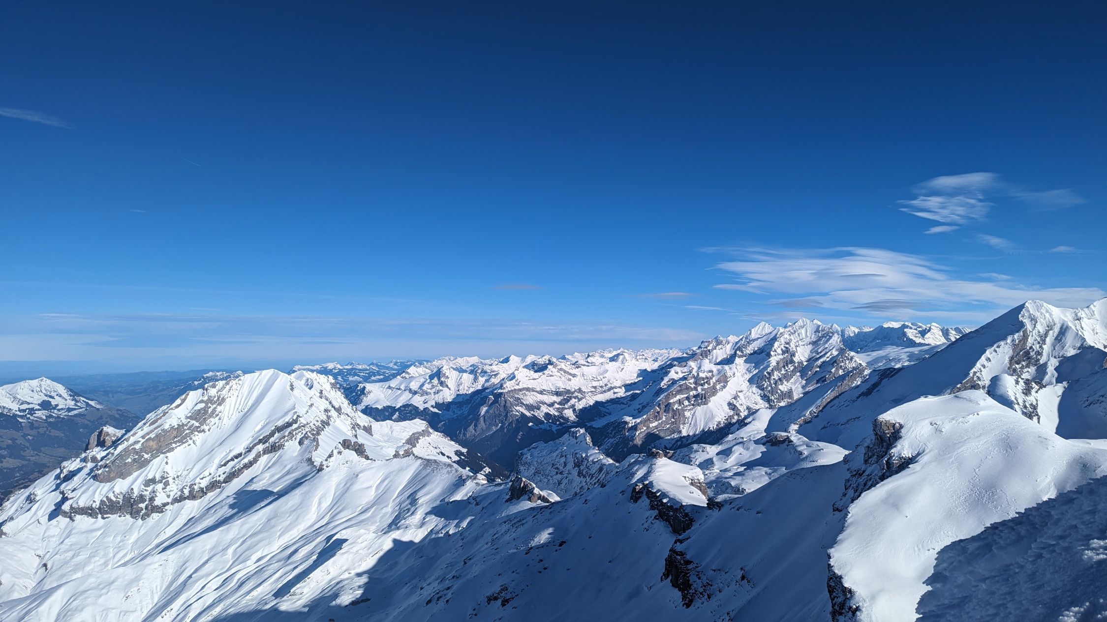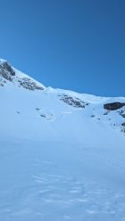Von der Bahn bis zum Gipfel hatte es eine tragende Schmelzkruste. Ab 2900m wechselte der Schnee etwas, aber blieb immer noch sehr hart. Harscheisen sind hilfreich. Generell fühlte es sich an wie eine April-Skitour.