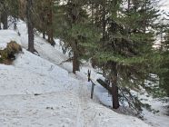 Mehrheitlich hart. Aktuell sehr schöne Schneeschuhtour; die ruppige Waldabfahrt ist aktuell mit Ski nicht empfehlenswert. Immerhin hat es auch im Wald sehr viel Schnee.