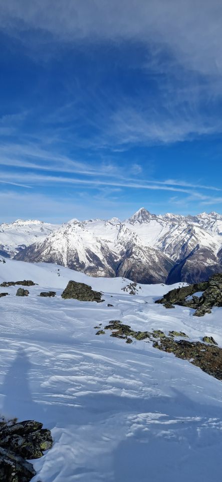 Nach der netten Gipfelbegegnung mit zwei sportlichen Walliserinnen bin ich südseitig abgefahren und einige Hänge waren schön al dente, der Rest war pistenmässig hart.