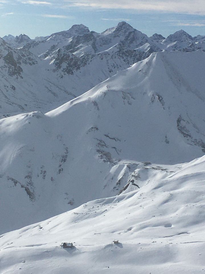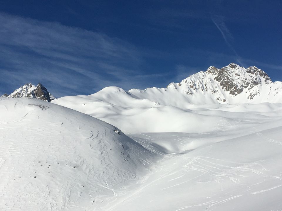 Pulverschnee in der Nordflanke Viroula 2900 m gegenüber der Keschnadel 3386 m. Start Bergstation Pizzet 2450 m 10 Uhr, 0 Grad, windstill. Erste Bahn 9.15 Uhr, Tourenbillet CHF 26.00. Bin der guten Spur gefolgt mit Harscheisen, da Spur ziemlich glasig. Ab Höhe 2600 m Pulverschnee und auf dem Skigipfel Westwind. Bin dann nicht via Piz Belvair nach Zuoz abgefahren, da Schneeverhältnisse nicht optimal sind, bin via Aufstiegsroute abgefahren, ab Bergstation auf der präparierten Skipiste, hart aber schön zu fahren.