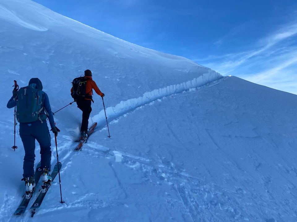 Genug Schnee um ab Parkplatz zu starten. Einige apere Stellen auf der Alpstrasse und beim Aufstieg durch die erste Waldschneise, dort Ski kurz getragen. Die zweite Waldschneise ist durchgängig schneebedeckt (für Abfahrt genutzt). Die Schneedecke ist praktisch überall durchgefroren und mehrheitlich tragend. Die alte(n) Aufstiegspur(en) sind unten z.T. etwas glasig, aber v.a. weiter oben noch gut griffig. Harsteisen nicht zwingend, aber in der Steilstufe von Vorteil. Wächte am NW-Grat wurde in den letzten Tagen geschaufelt - danke! Noch knapp genug Schnee um mit Ski bis zum Gipfel aufzusteigen und abzufahren.