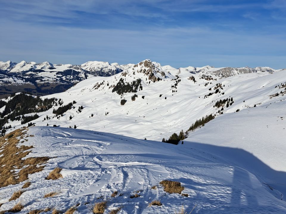 Überraschend gute verhältnisse mal Hart mal ein bisschen Pulver und in den SW hängen schon fast Frühlingssulz