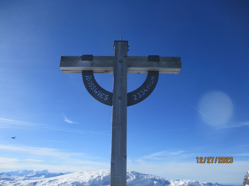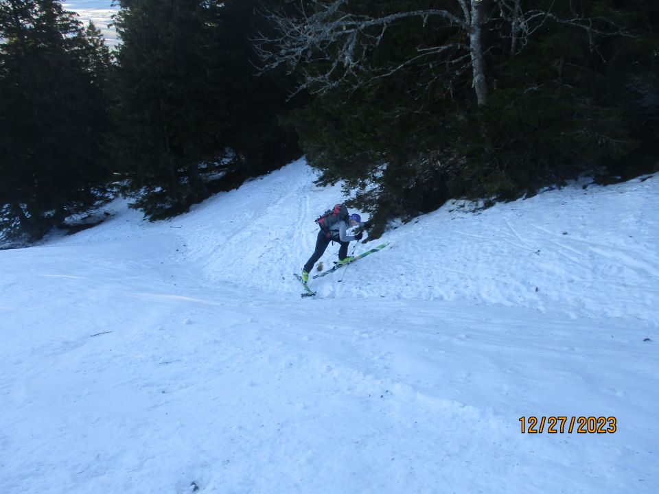 Mein Tourenpartner Valdi auf Skiern war auch ganz zufrieden, war aber ob seiner Harscheisen im Aufstieg ganz froh. Tricky mit Skiern vor allem der teils ausgeaperte und recht vereiste Hang vom Isisizer Grat abwärts in Richtung Rosswis.