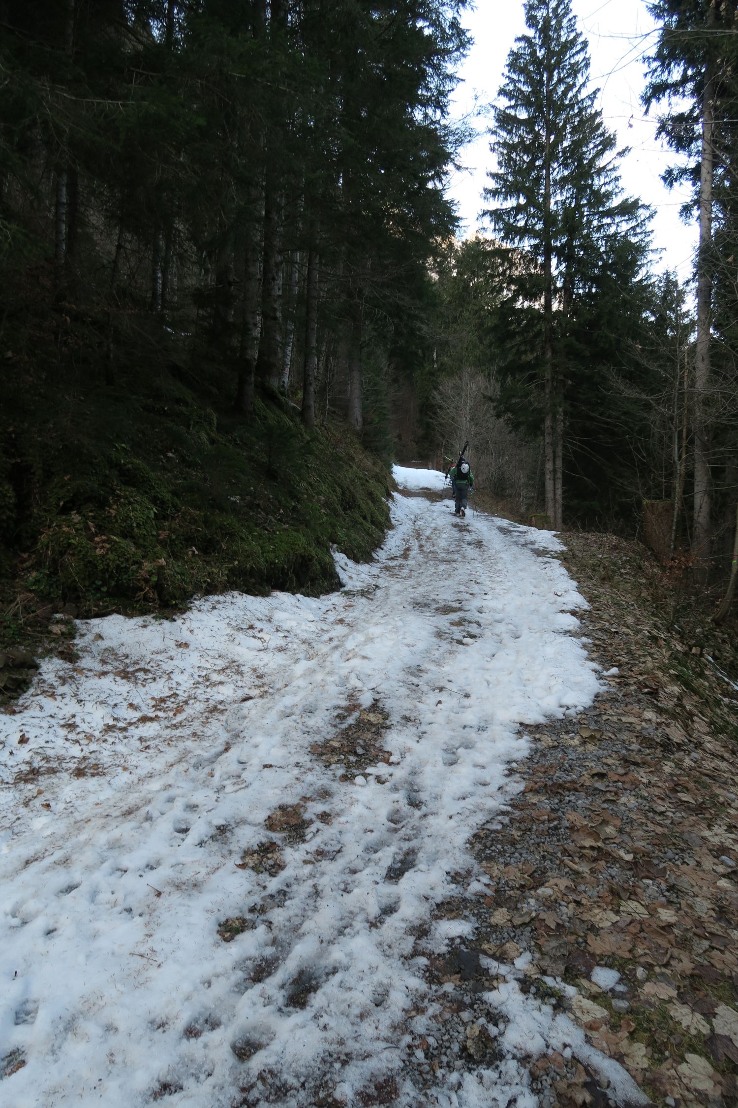 Unten etwas mehr Tragpassagen falls kein Neuschnee.