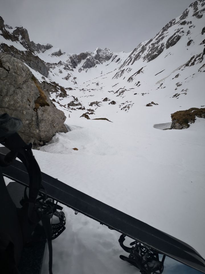 Pickelhart vom Gipfel bis Meglisalp, ebenso hart auf den Rotsteinpass (knapp ohne Steigeisen machbar für mich als Tourenboarder) und nochmals knüppelhart bis zu Gerstei oberhalb der Thurwis...Winter, wo bist du denn?!?