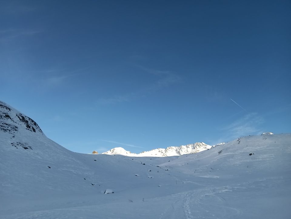 Aufstieg Kesch Pitschen problemlos. Abfahrt nach Norden hat sich gelohnt, Pulver in den Mulden und ab und zu harte, tragende Kruste.