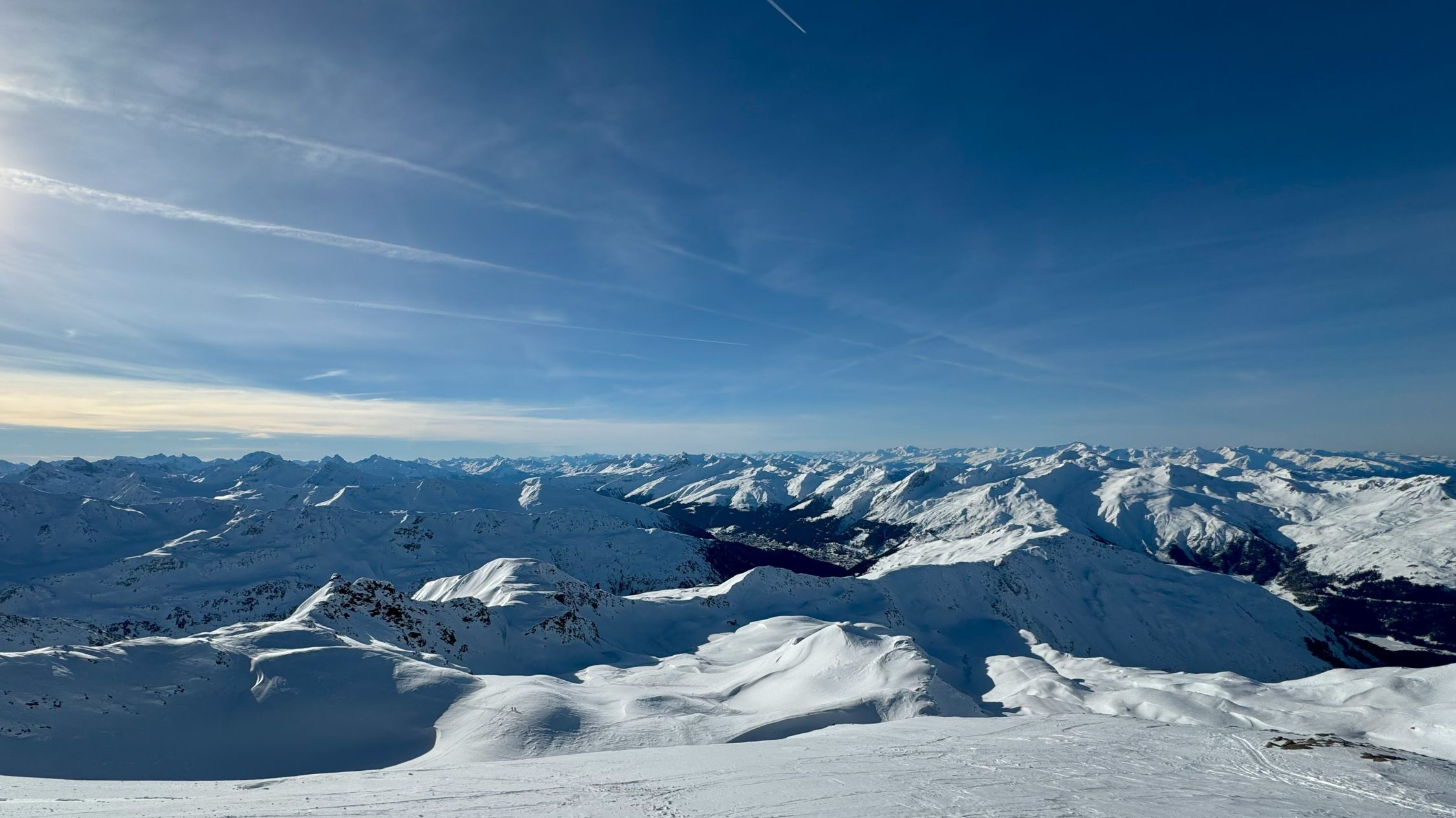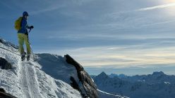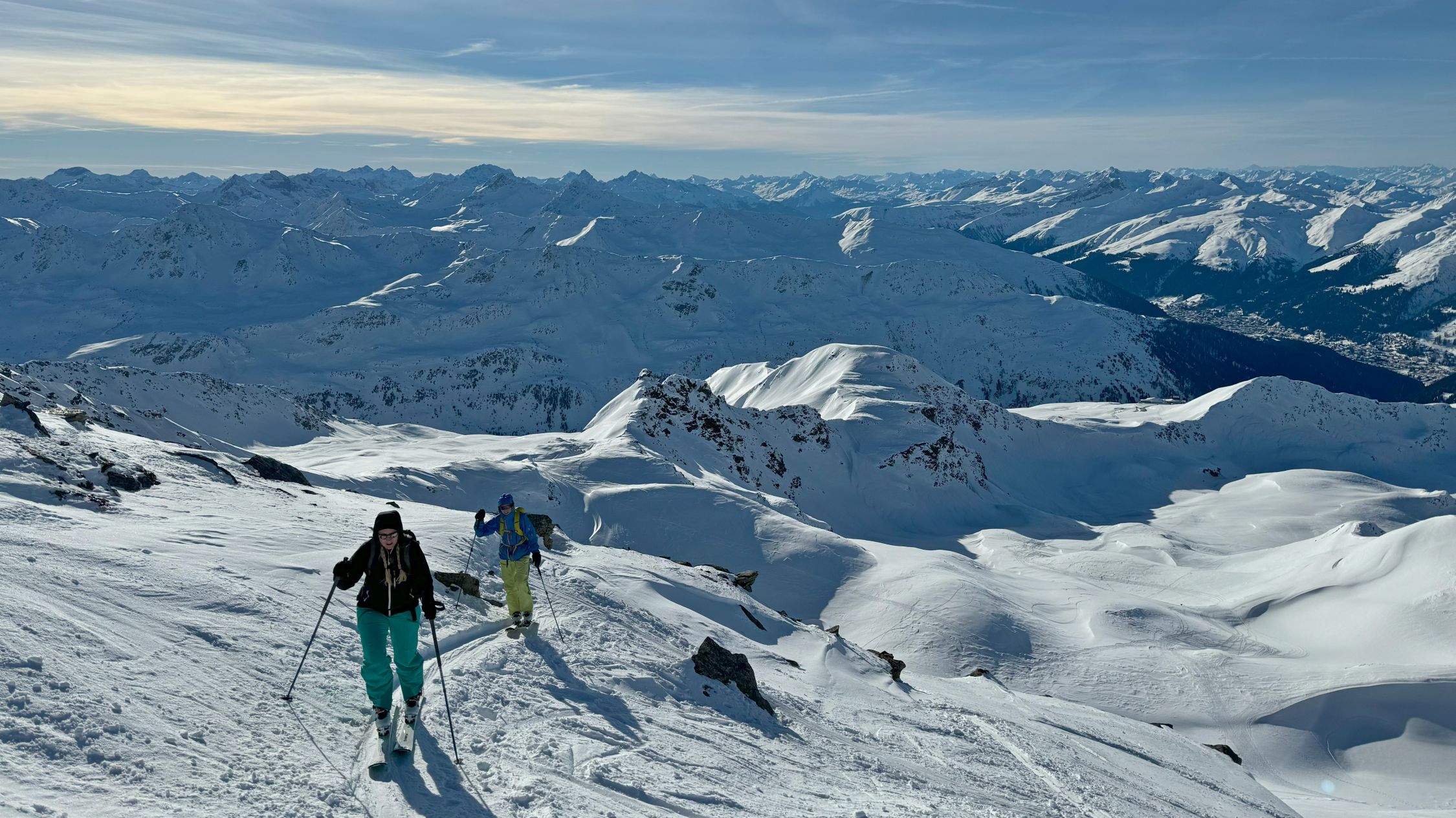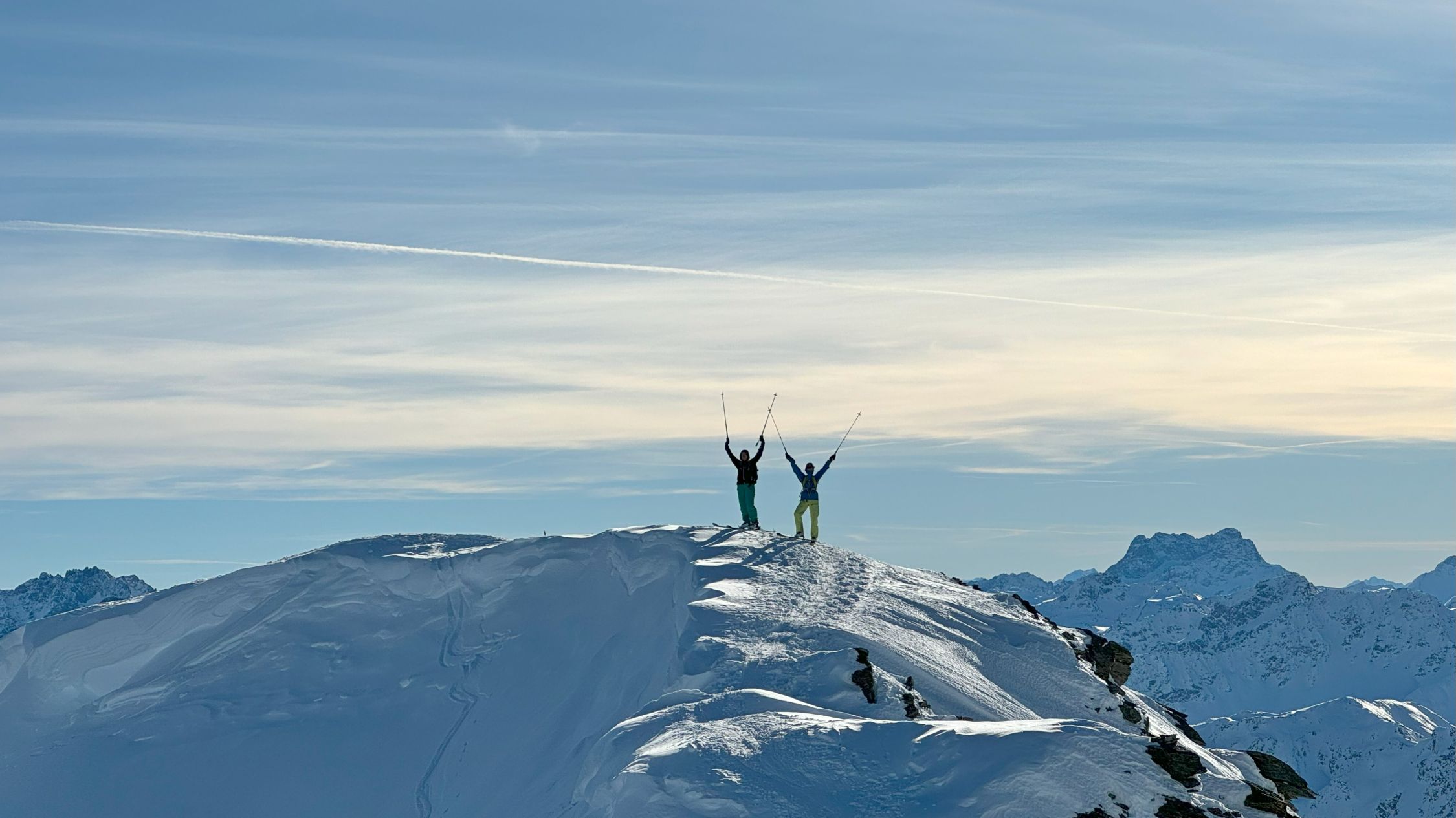 Am Nachmittag bei recht kaltem Wetter auf das Pischhorn. Aufstieg sehr gut gespurt. Die Aussicht wie immer toll. Die Abfahrt via Mattjiischtäli dann ziemlich hart mit ganz wenig Pulver in den flacheren Stellen. Sind dann zur Pischbahn gequert. Die Abfahrt auf dem breiten Schlittel/Wanderweg war dann exzellent.