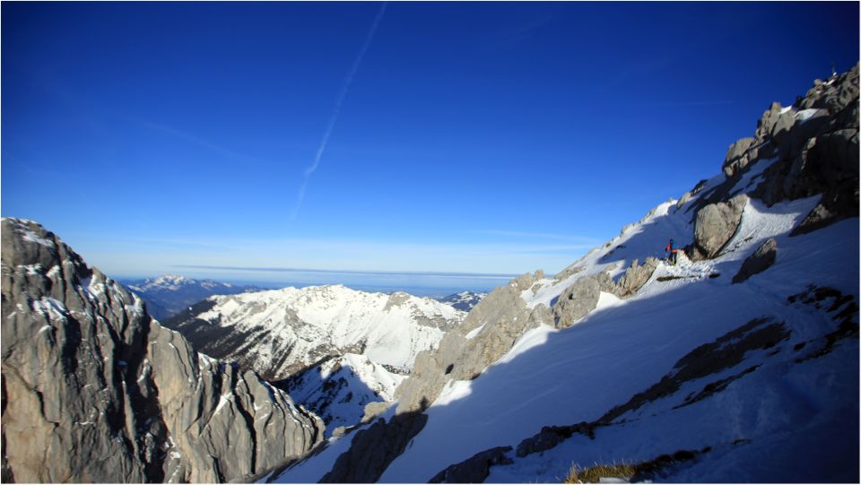 Gipfelanstieg gut ausgetreten, geht auch ohen Steigeisen. Grödel könnenjedaoch angenehm sein.