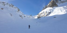 Aufstieg ohne Harscheisen, aber im oberen Teil mit Schnee Verwehungen auf harter Unterlage etwas rutschig. Aufstieg zum Gipfel auf Trittschnee gut machbar. Abfahrt von Chli Bielenhorn griffig und recht angenehm. Abfahrt von Schafberg sehr ruppig mit allen Schneearten. Wetter fantastisch.