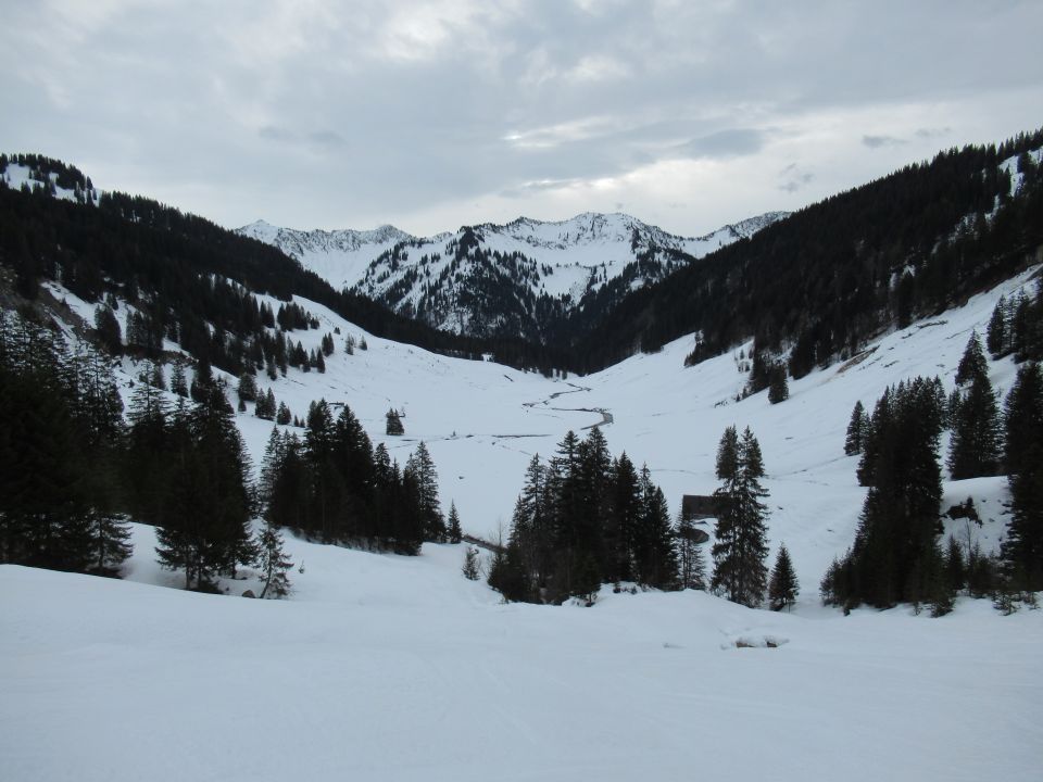 Harte Schneeverhältnisse. Bei der Abfahrt letzter Hang untern Firnauflage