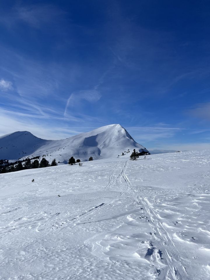Passstrasse hat ein paar wenige cm Neuschnee. Gute Aufstiegsspur bis Rickhubel ca. 15cm Pulver auf harter Unterlage. Abschnitt von Rickhubel bis Gipfel eher mühsam, da grösstenteils windbearbeitet.