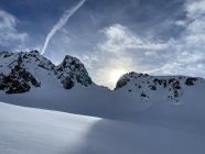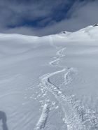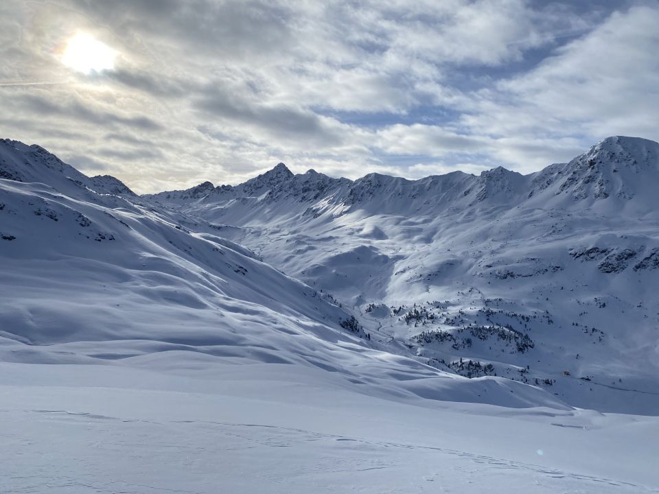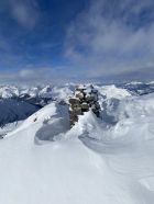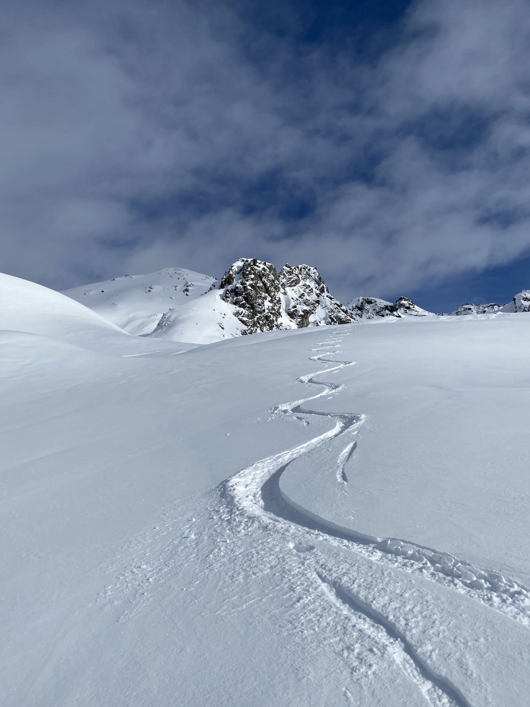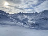 Derzeit Fluelapassstraße geöffnet und daher weniger Parkplätze als sonst verfügbar. Nach der Silvesternacht war es allerdings mit 5 parkenden Autos um 9:30 Uhr recht ruhig. Es hat ca. 10 bis 20 cm trockenen Neuschnee auf einer harten Kruste, der im gesamten Aufstieg aber gut zu spuren war. Da die Sonne doch mehr zu sehen war als erwartet, gab es im Aufstieg und bei der Abfahrt gute Sichtverhältnisse. Als Erster dann auch abgefahren und den traumhaften Pulverschnee genossen. Nur an ganz wenigen Stellen ist die Arbeit des Windes beim Abfahren zu spüren gewesen. Daher fast unbeschwerten Fahrvergnügen von oben bis unten.