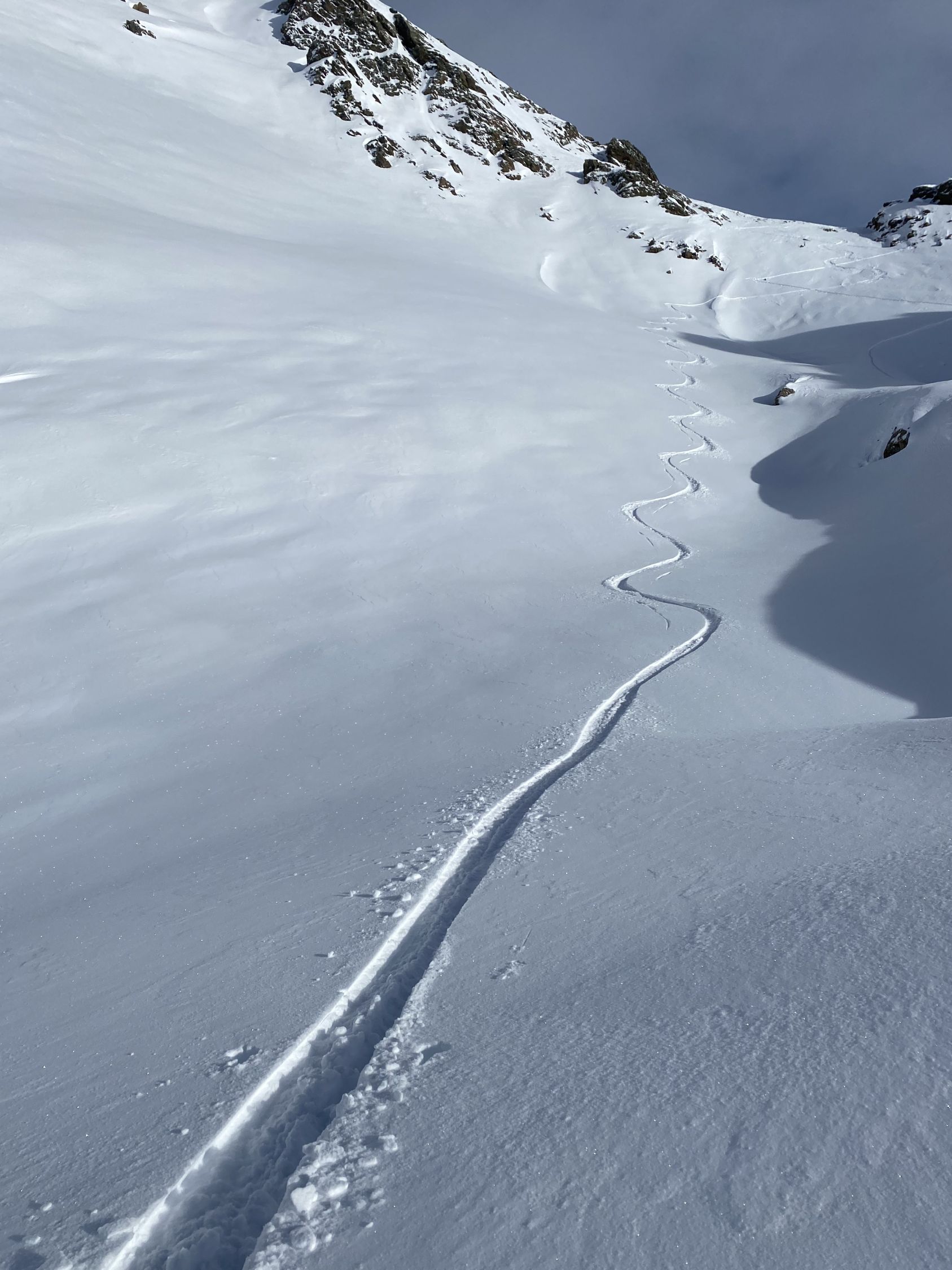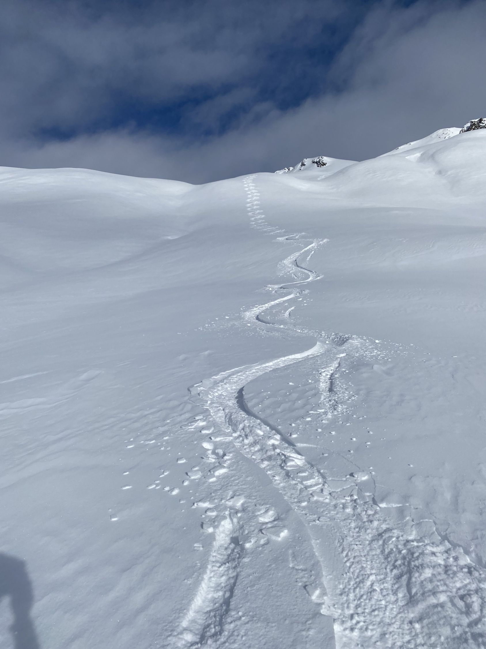 Sonne war kurz nach Mittag weg und es war kalt. Der Pulver sollte als noch 1-2 Tage halten, wenn der Wind nicht wieder an die Arbeit geht.
