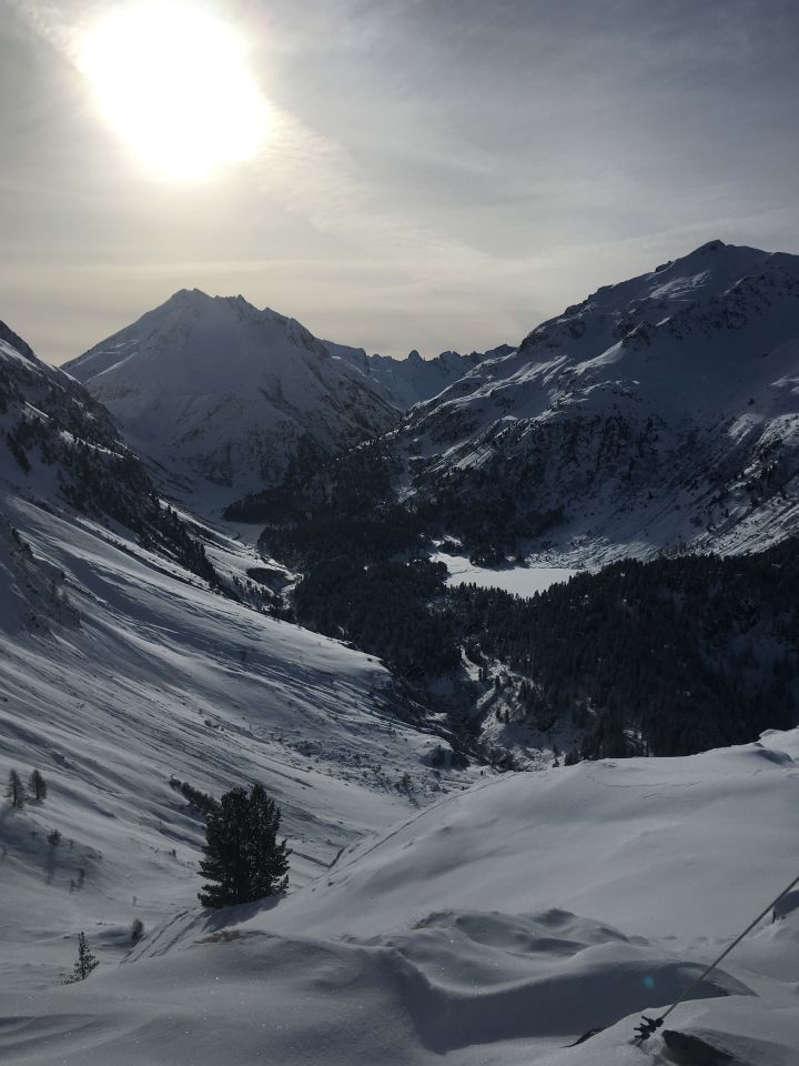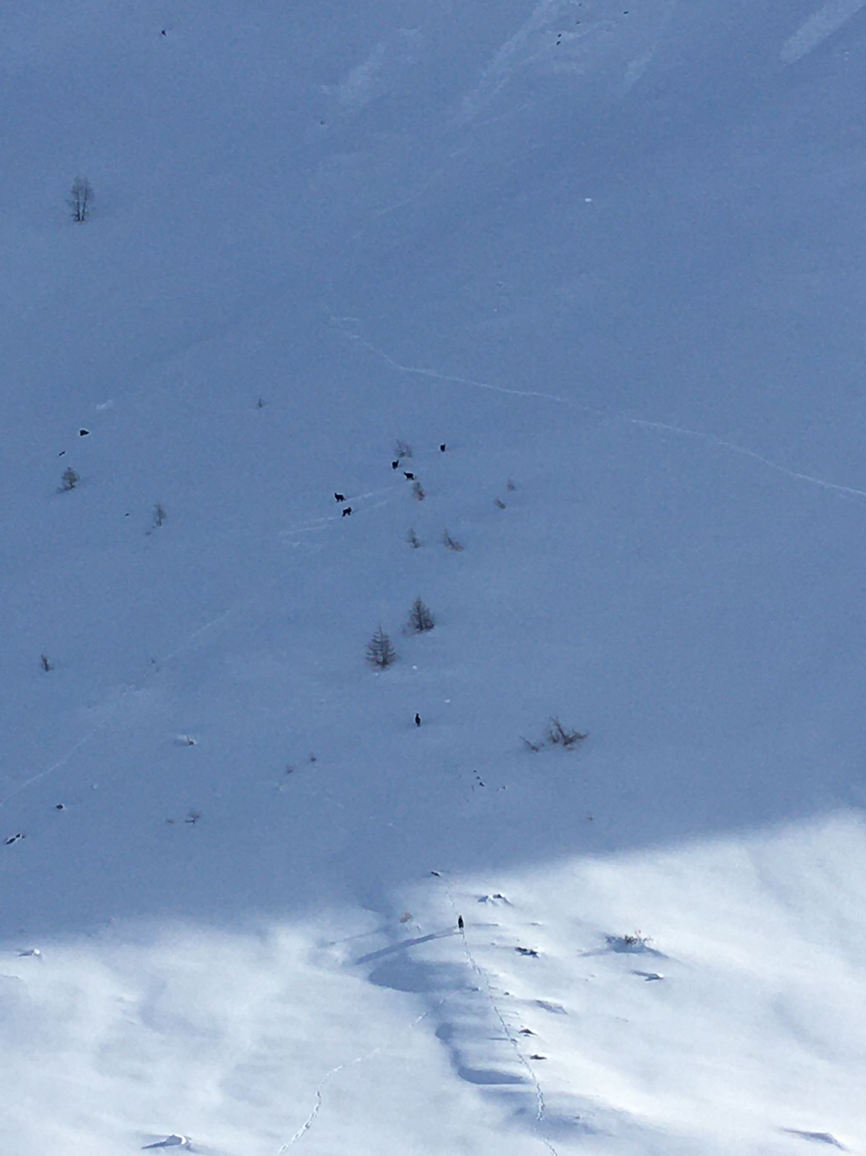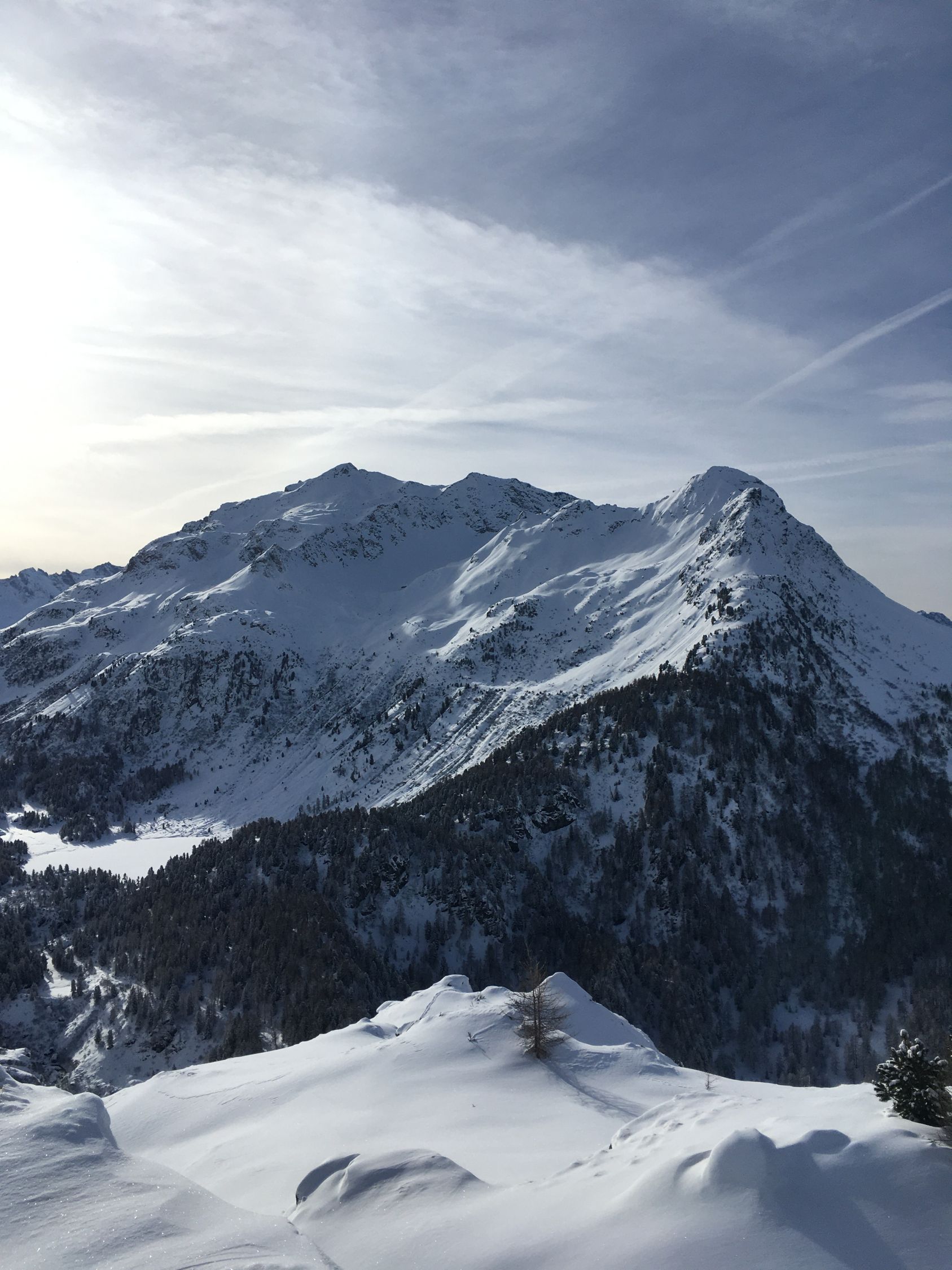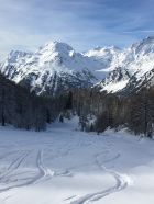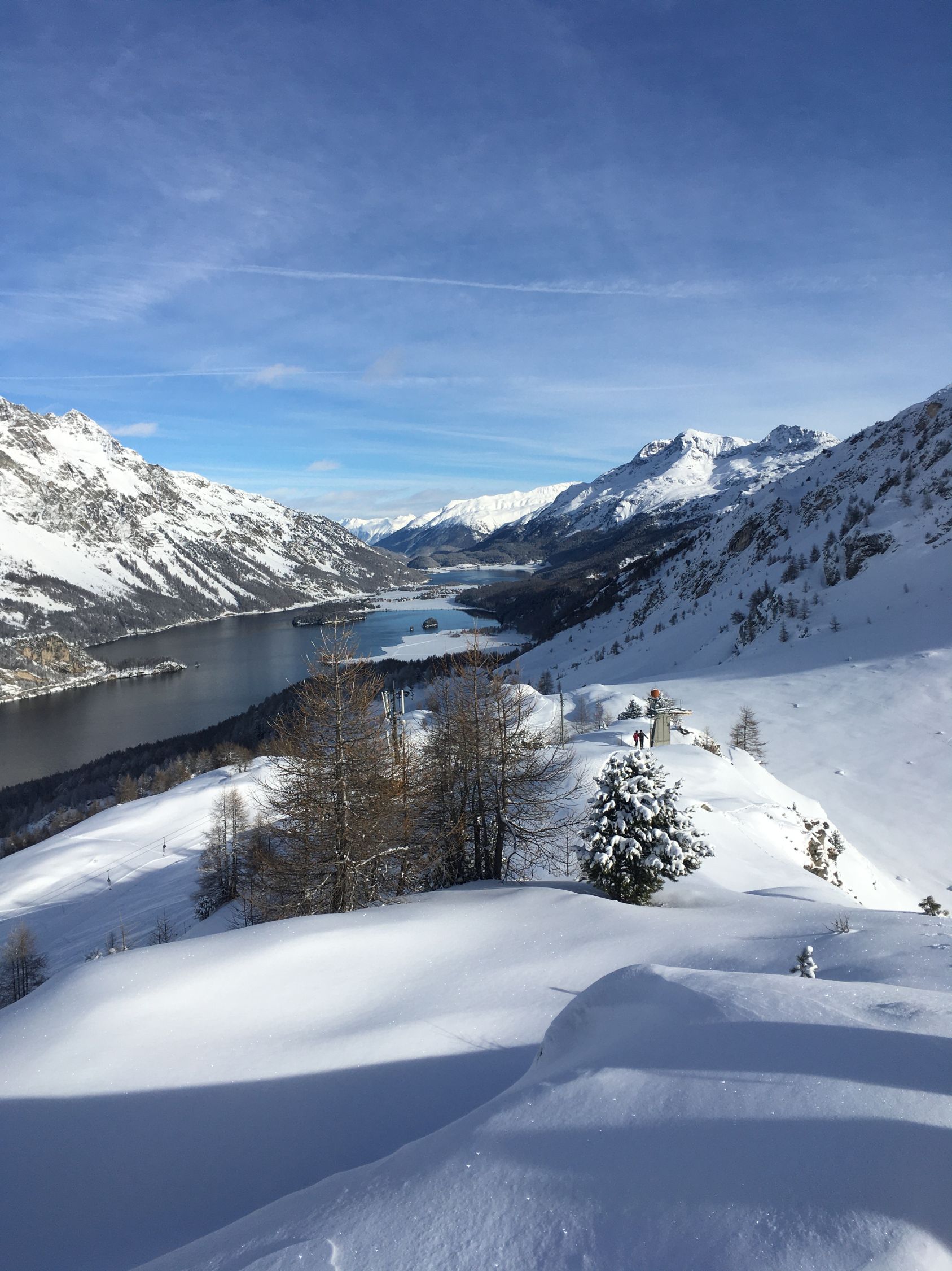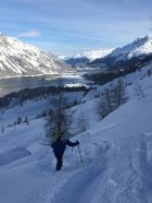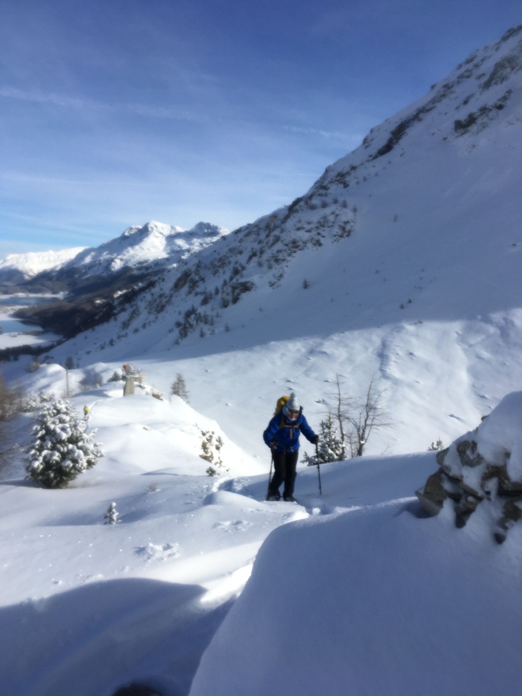 Allen ein erfolgreiches 2024! Pulverschneetour auf den Aussichtsgipfel hoch über Maloja. Start in Maloja 9.15 Uhr, minus 8 Grad, windstill. Zuerst der frisch gespurten Langlaufloipe bis Punkt 1855. Nun den steilen Wanderweg hoch, noch ohne Spur, bis Plan di Cavai. Hier treffen wir auf die frisch präparierte Abfahrtspiste vom Skilift, man kann aber gut links davon die eigene Spur ziehen, fast keine Skifahrer unterwegs. Nun steiler hoch bis Bergstation Skilift und weiter auf den schönen Aussichtsgipfel. Tolle Abfahrt im Pulverschnee mit perfekter Unterlage zum Ausgangspunkt. Einzig der Wanderweg machte bei der Abfahrt Mühe, sehr viel Schnee im Wald. Margrit war mit Schneeschuhen dabei, konnte hie und da von der Piste profitieren. Ca. 15 cm Neuschnee.