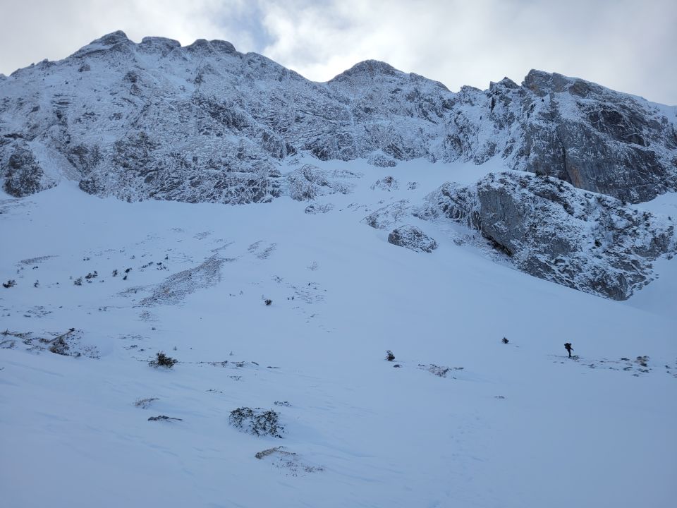 Nordwand sieht super aus, aller Schnee wurde weggeblasen. Ab 1700 ist der Boden auch zunehmend gefroren.