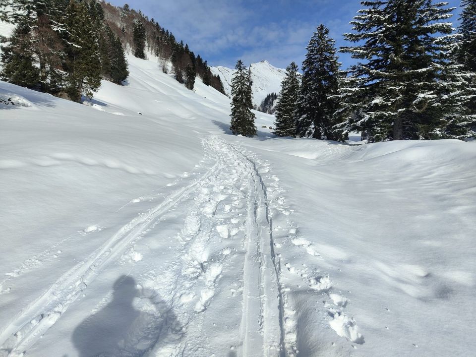 Mit dem Auto bis zur Alp Matt. Bis Oberchäsere ausgezeichnet, danach stark abgeblasen. Die Speergflanke ist eine gletschartige Eisblatter, trotz Harscheisen mussten meine Vorgänger aufgeben, ein anderer Tourengänger rutschte gar die halbe Flanke ab. Es war so hart, dass selbst ein Fussaufstieg ohne Steigeisen keinen Sinn machte. Ich besuchte stattedesen den Heidenbüel, ein unscheinbarer Gipfel zwischen Oberchäsere und Mattstock. Die Abfahrt in gut 10cm Pulver ein Genuss, daher ausgezeichnet, auch wenn Ziel nicht erreicht. Ich blieb immer auf einem Gratrücken, in den Mulden hat es zum Teil 20cm Pulver und mehr.