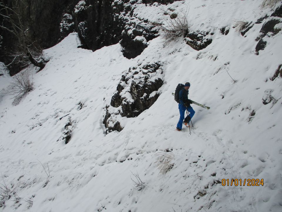 Schöne Abfahrt für Stefan auf Skiern. Dafür musste er die mühevolle Tragepassage über den Türlenweg in Kauf nehmen, der sich mit Schneeschuhen weitaus besser begehen ließ, Allerdings bin ich auf dem Rückweg dort selbst mal ein Stück weit den Hang hinuntergerutscht.