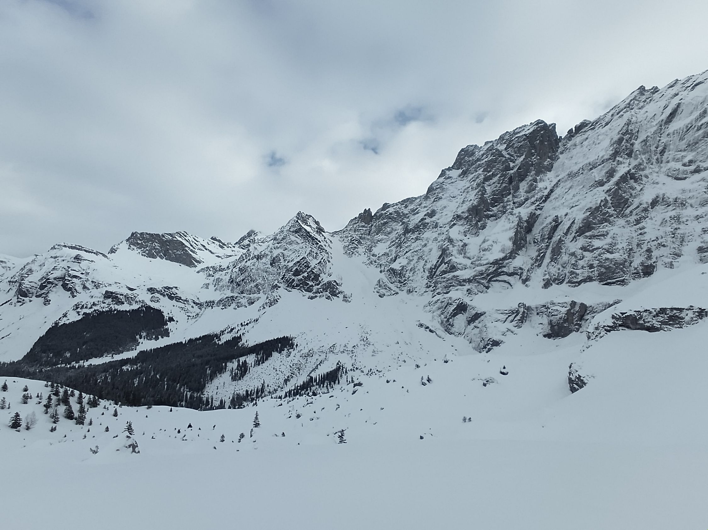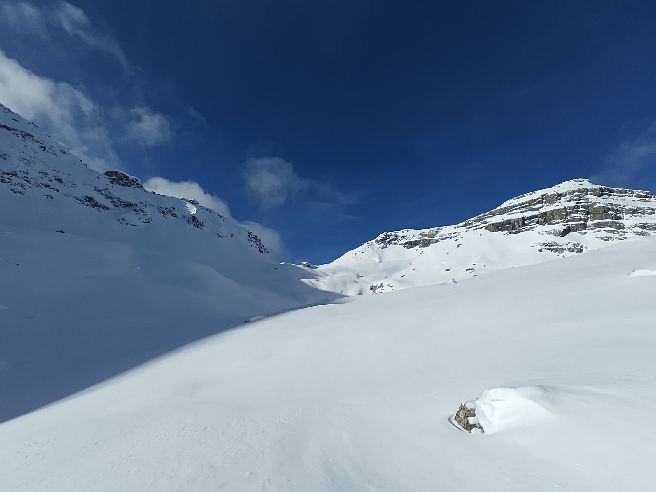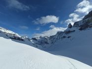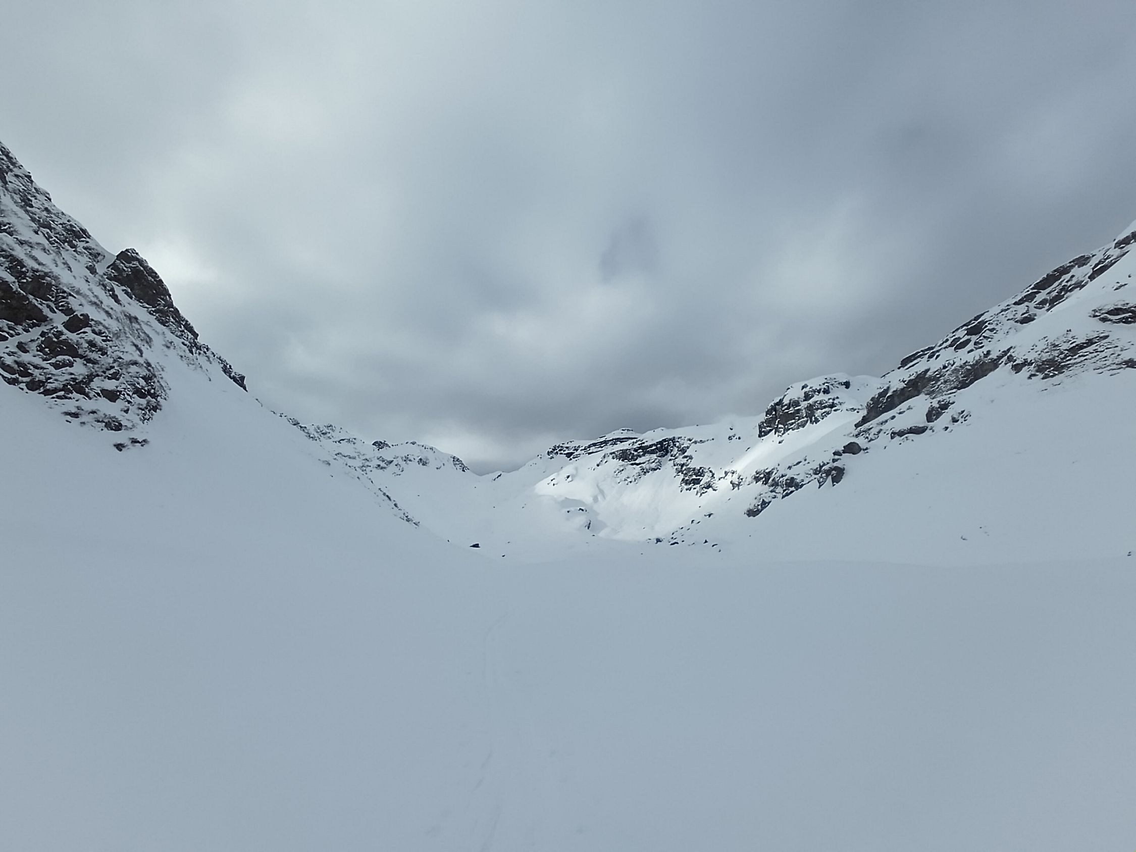 Strasse bis Sittlisalp Bahn schneefrei, also Ski tragen oder mit dem Auto hoch fahren. Die Skier können gleich ab der dortigen Brücke montiert werden. Aufstieg durch den Wald und durchs Griesstal problemlos. Es liegen etwa 10 cm Neuschnee auf der Route. Der Deckel darunter ist tragend. Ab dem Pass (bzw. kurz davor) beginnt dann der Eiertanz auf der eisigen Oberfläche. Am Gipfelhang waren Harscheisen hilfreich.