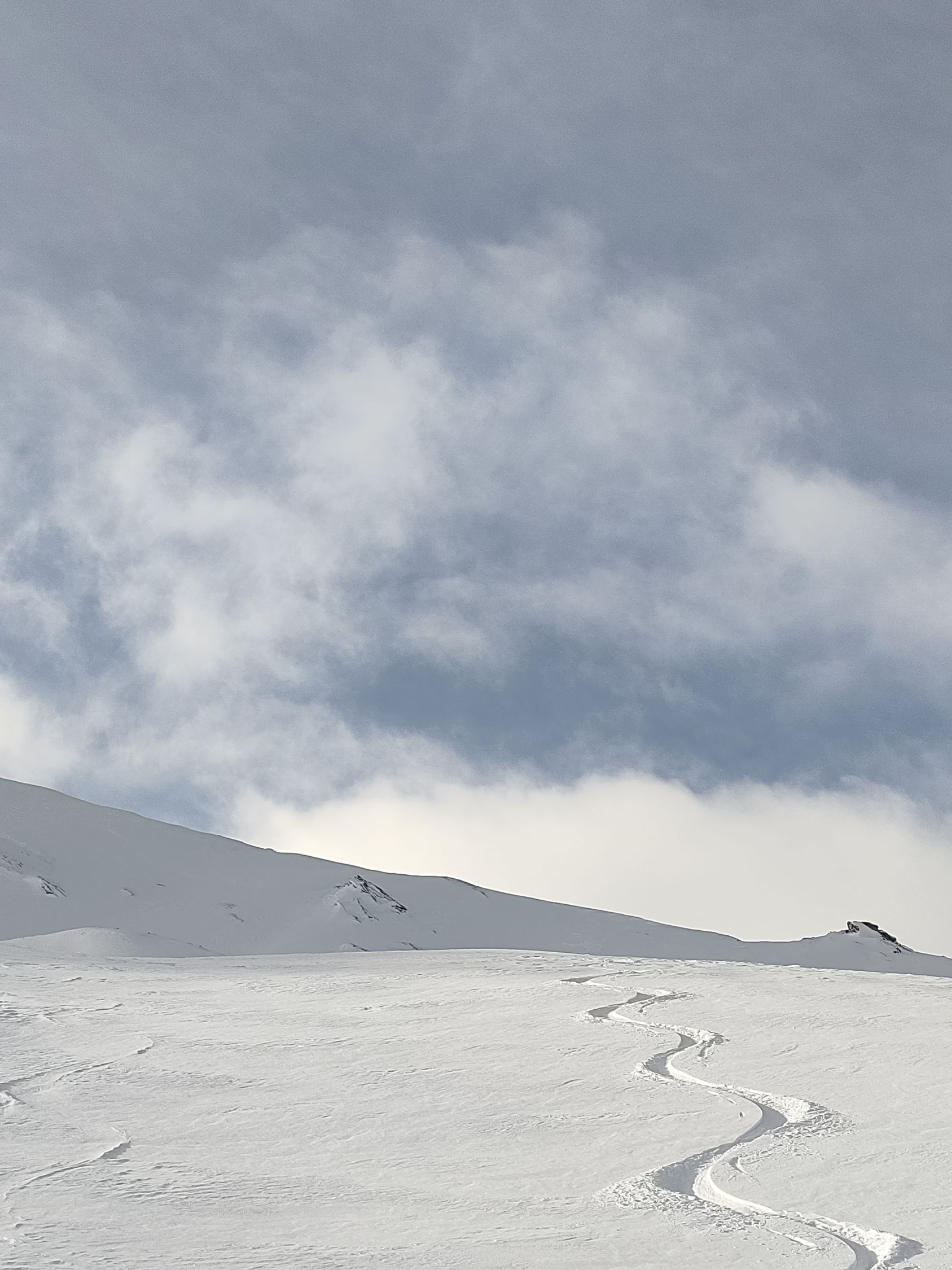 Schnee durchegend pulvrig weich, bis auf ein paar vom Wind gedeckelte Abschnitte.