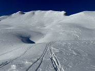 Gute Verhältnisse im Aufstieg und bei der Abfahrt. Der Gipfelhang war zu meiner Überraschung gut fahrbar, mit etwas Kraft und Technik war der Schnee gut drehend.