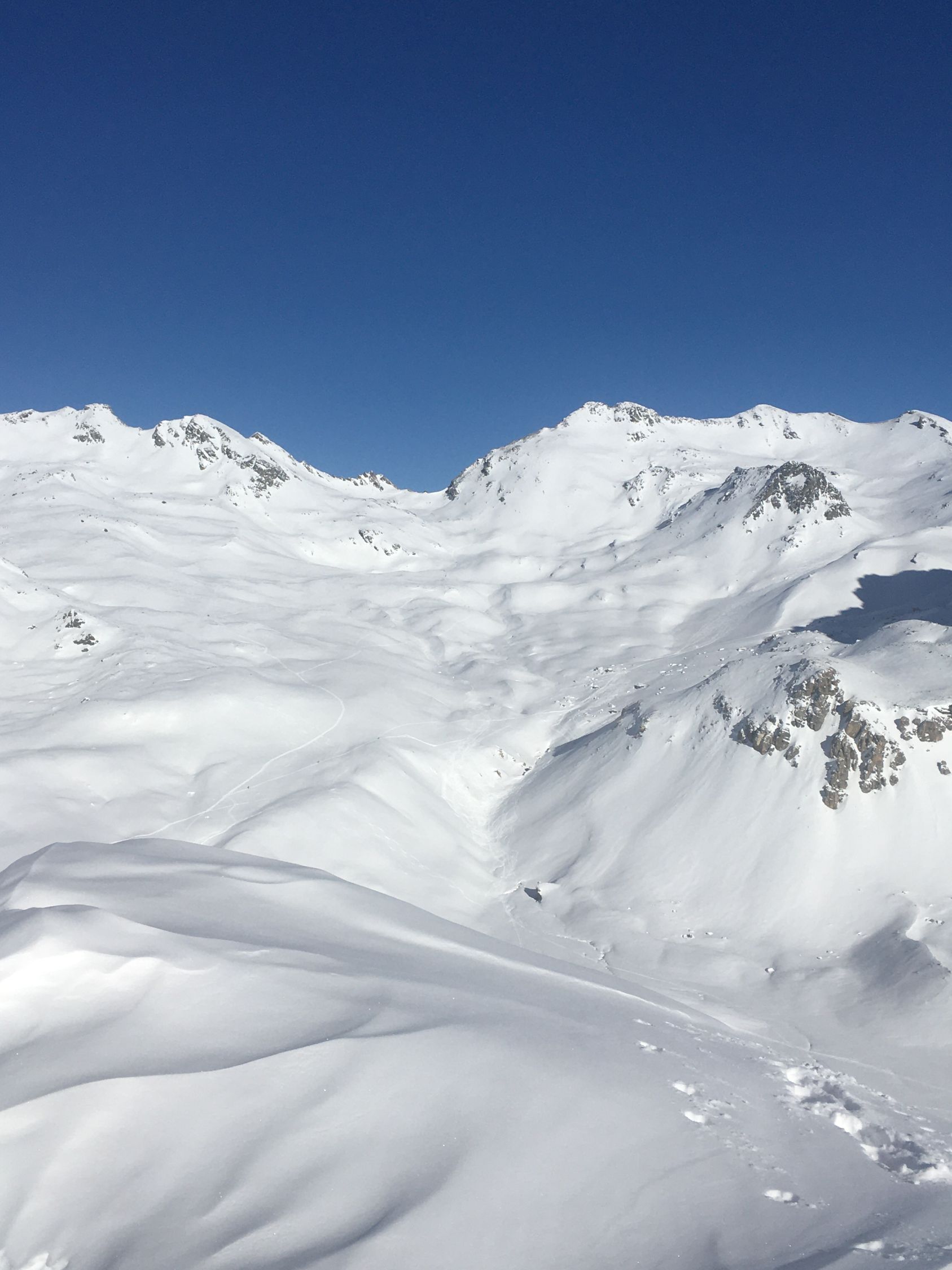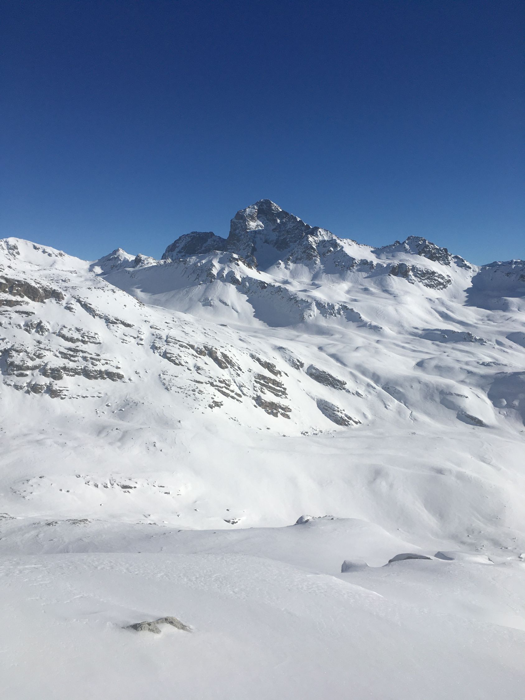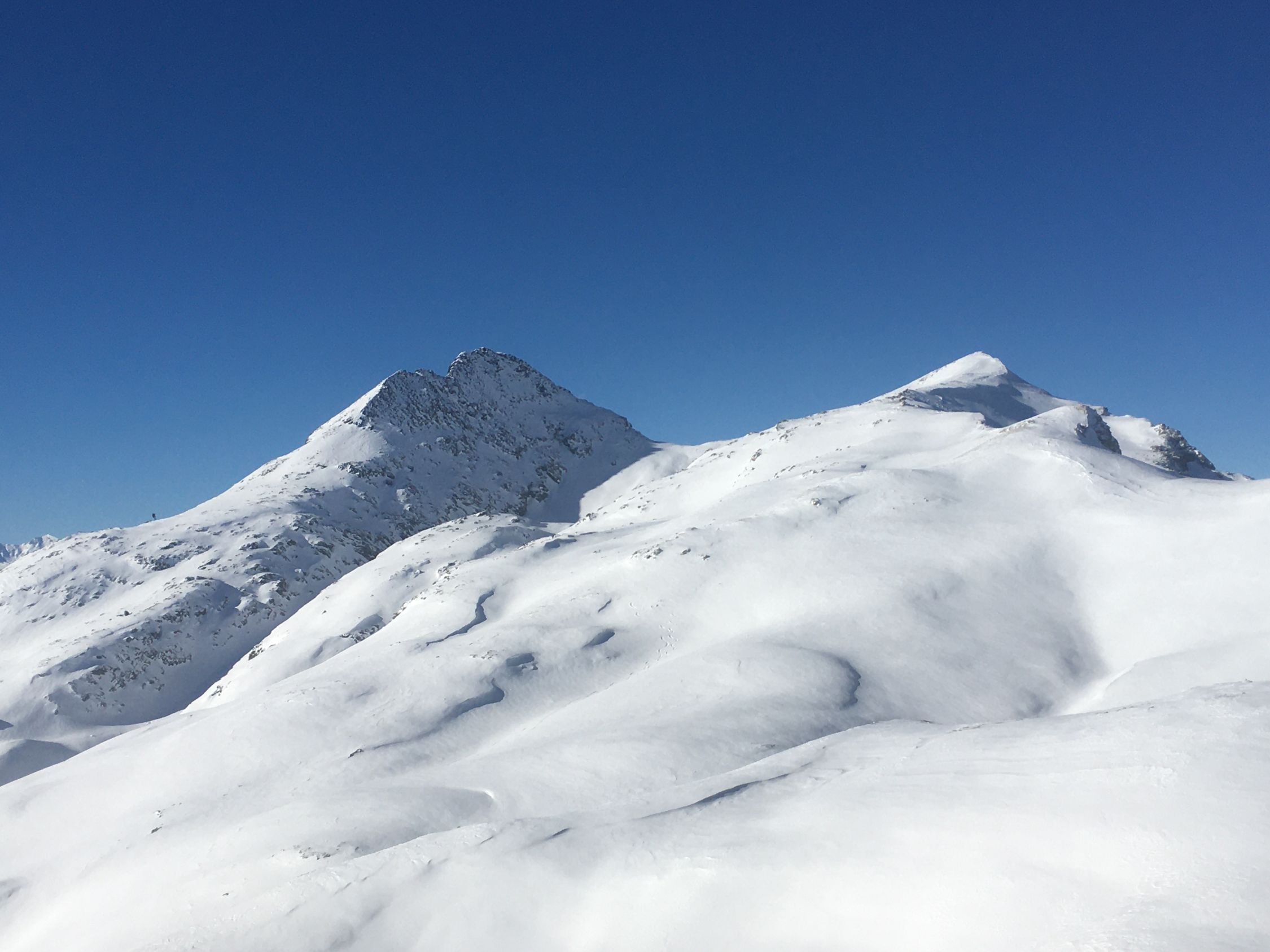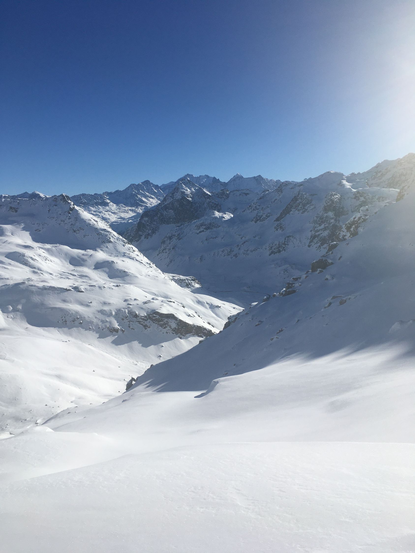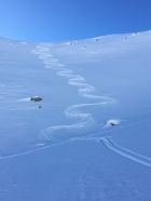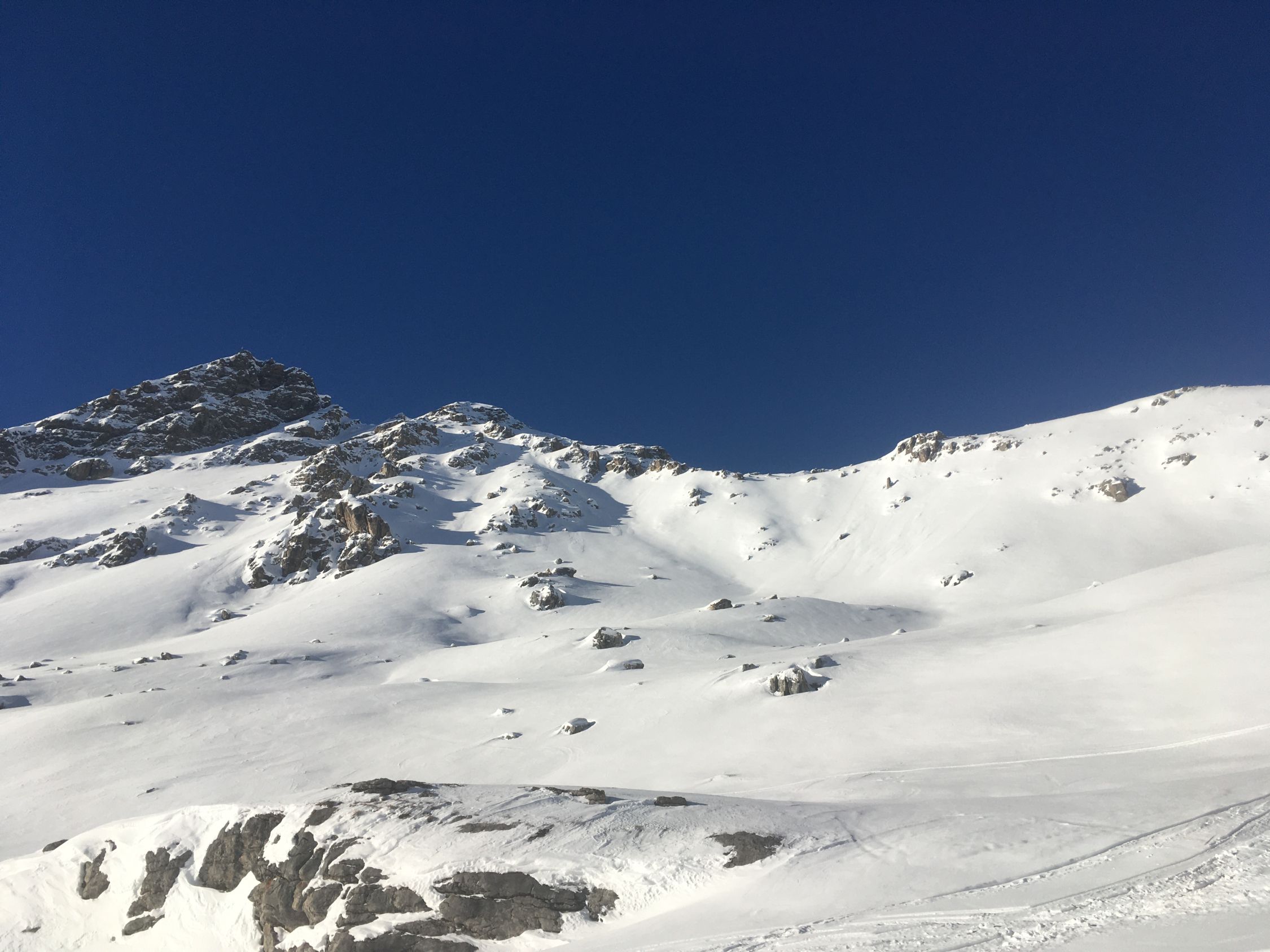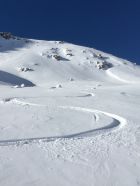 Pulverschnee Tour auf einsamen Gipfel oberhalb Val d‘Agnel gegenüber Piz Neir. Start Parkplatz Val d‘Agnel 8.35 Uhr. gerade noch ein Parkplatz geschnappt, schlecht geräumt! Minus 5 Grad, windstill, Sonne ab Höhe 2375 m. Gute Spur bis Abzweigung Fuorcla Digl Leget, ab hier spuren im Pulverschnee. Bei Höhe 2675 musste ich Harscheisen montieren, rutschig in der Nordflanke, hätte meine Spur tiefer ansetzen sollen, in etwa Route Crappa da Tocfs! Beim Nordgrat Piz Bardella dann angenehmer Aufstieg bis einen kleinen Gipfel im Grat auf Höhe 2750 m. Der Wintergipfel ist im Schatten und erst ab Februar empfehlenswert. Abfahrt dann direkt den schattigen Nordhang, ca, 35 Grad steil, perfekter Pulverschnee bis Julierstrasse. Kurz vor Julierstrasse eine grössere Lawine in der Flanke Piz Bardella.