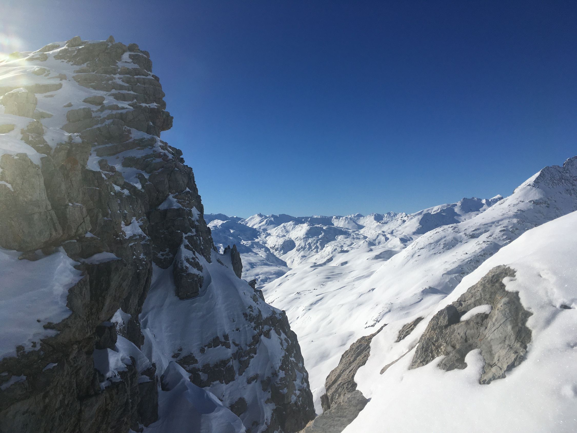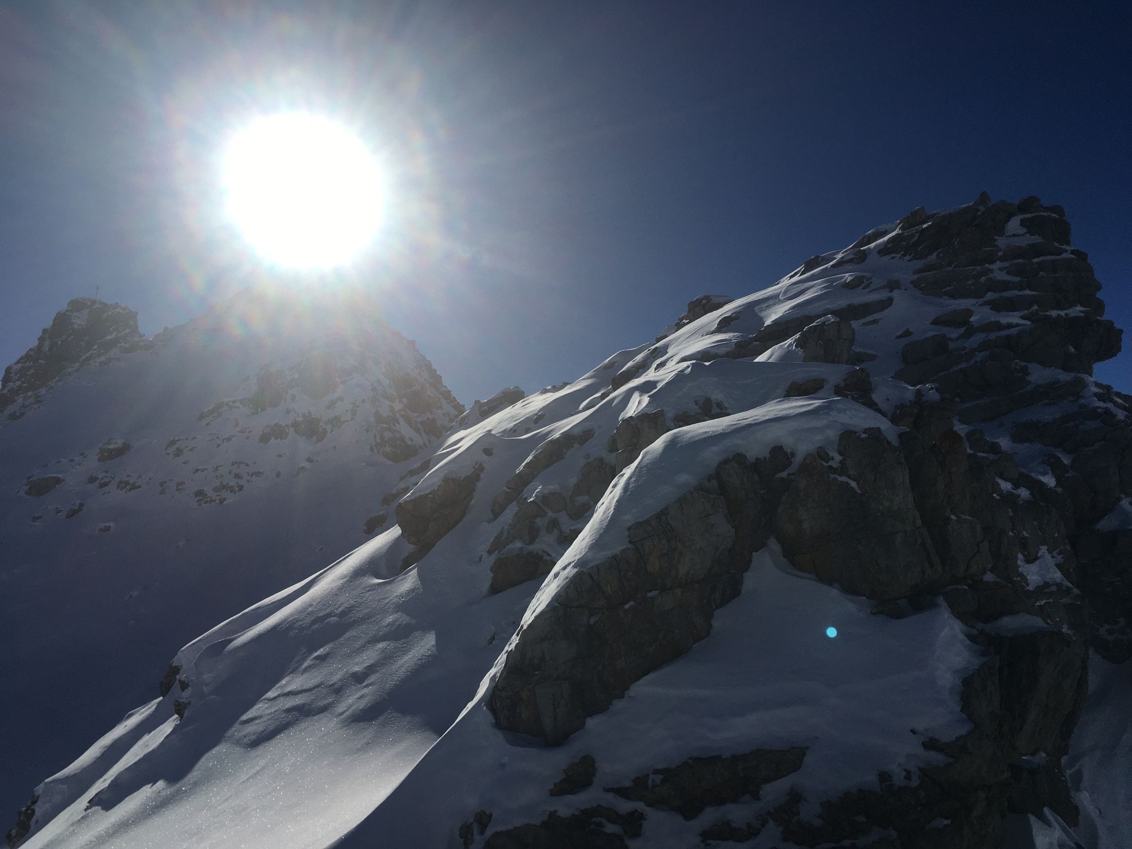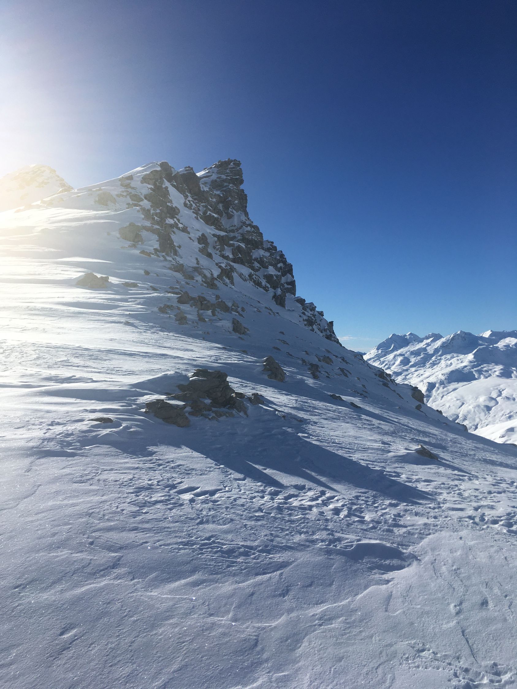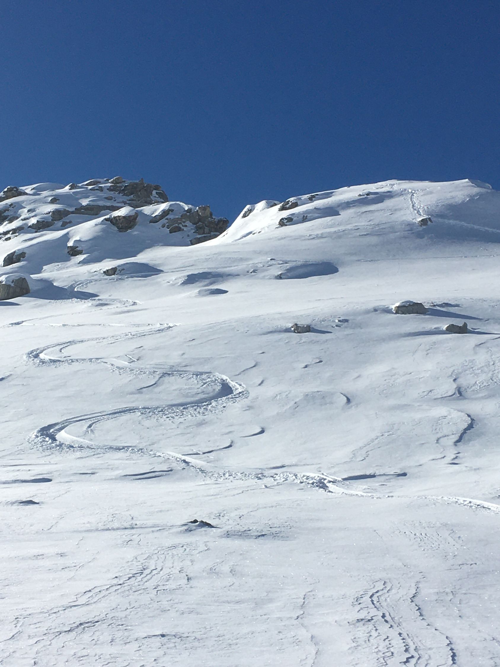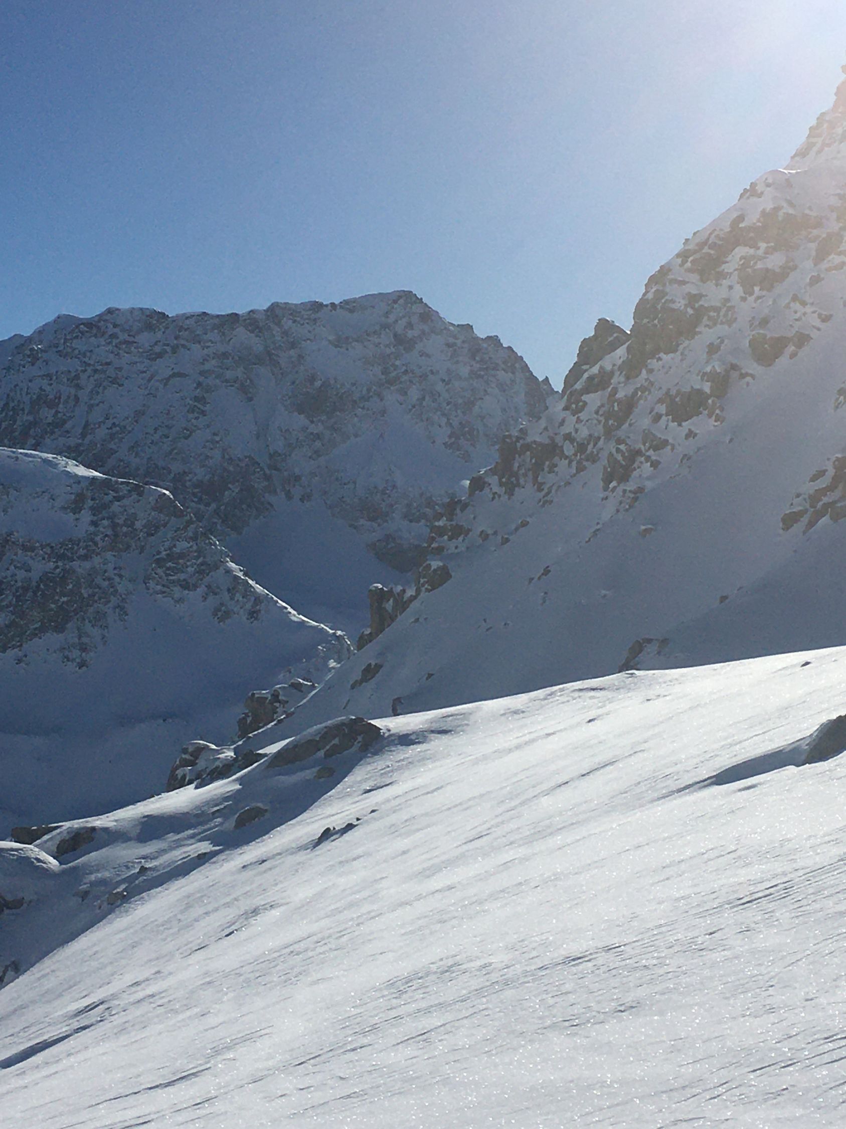 Pulverschnee Tour auf einsamen Gipfel oberhalb Val d‘Agnel gegenüber Piz Neir. Start Parkplatz Val d‘Agnel 8.35 Uhr. gerade noch ein Parkplatz geschnappt, schlecht geräumt! Minus 5 Grad, windstill, Sonne ab Höhe 2375 m. Gute Spur bis Abzweigung Fuorcla Digl Leget, ab hier spuren im Pulverschnee. Bei Höhe 2675 musste ich Harscheisen montieren, rutschig in der Nordflanke, hätte meine Spur tiefer ansetzen sollen, in etwa Route Crappa da Tocfs! Beim Nordgrat Piz Bardella dann angenehmer Aufstieg bis einen kleinen Gipfel im Grat auf Höhe 2750 m. Der Wintergipfel ist im Schatten und erst ab Februar empfehlenswert. Abfahrt dann direkt den schattigen Nordhang, ca, 35 Grad steil, perfekter Pulverschnee bis Julierstrasse. Kurz vor Julierstrasse eine grössere Lawine in der Flanke Piz Bardella.