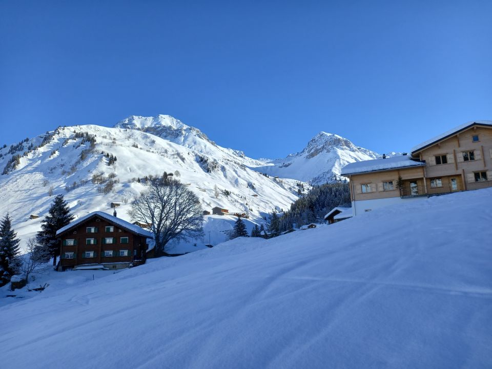 Abfahrt entlang Aufstiegsroute bis östlich Pkt. 1853, immer noch unverspurter Pulver auf guter Unterlage! Ab Dörfji auf der Strasse, Obacht auf vereinzelten Rollsplit, yours truly war froh um die Steinskis. Beim scharfen Rank nach Pkt. 1592 ab ins Gelände bis hinunter zur Bücke, Skating auf dem Trottoir bis Meierhof und dann wieder im Gelände bis zur Bushaltestelle, pünktlich a la minute fürs 14:43 Posti.
