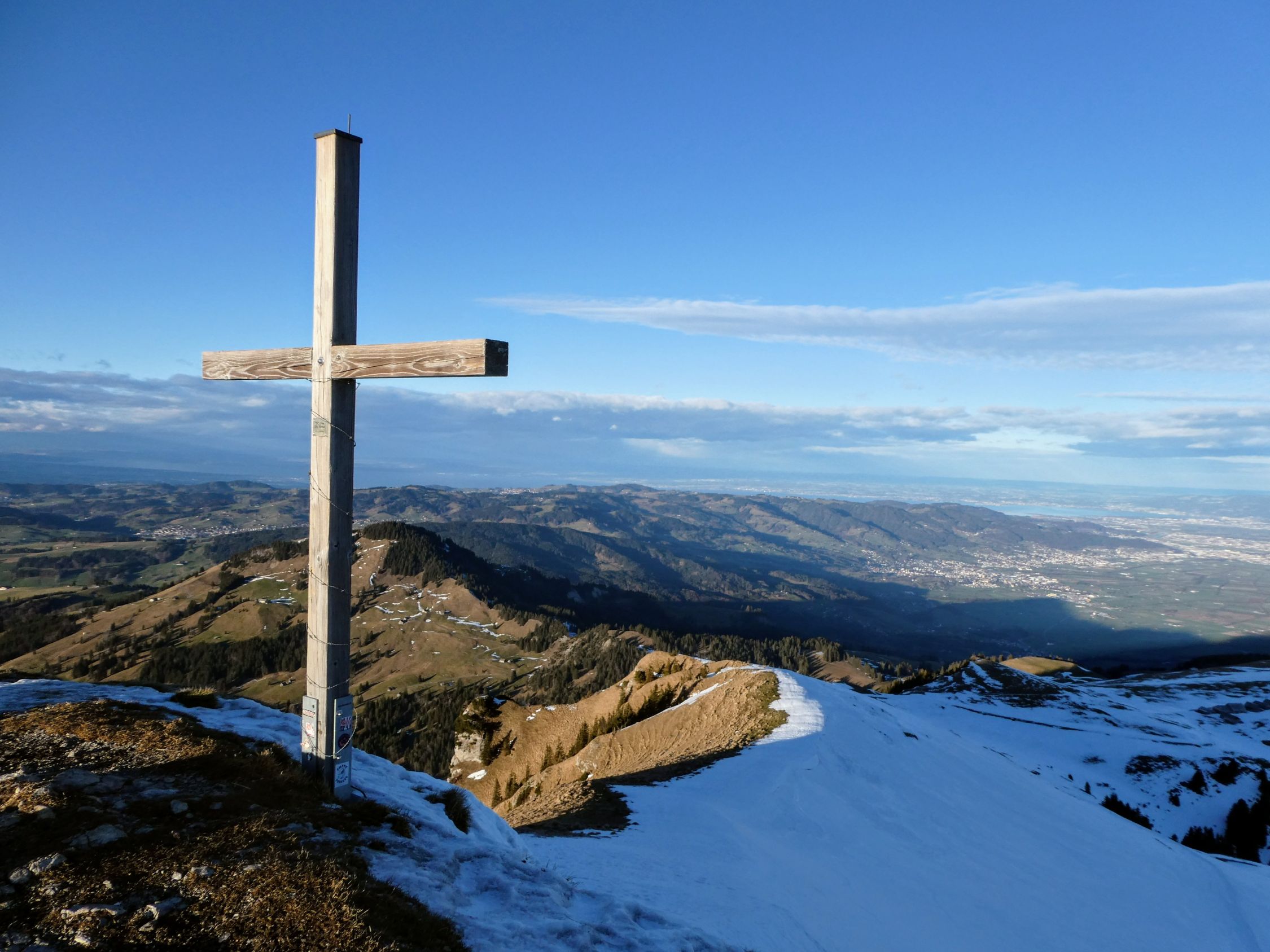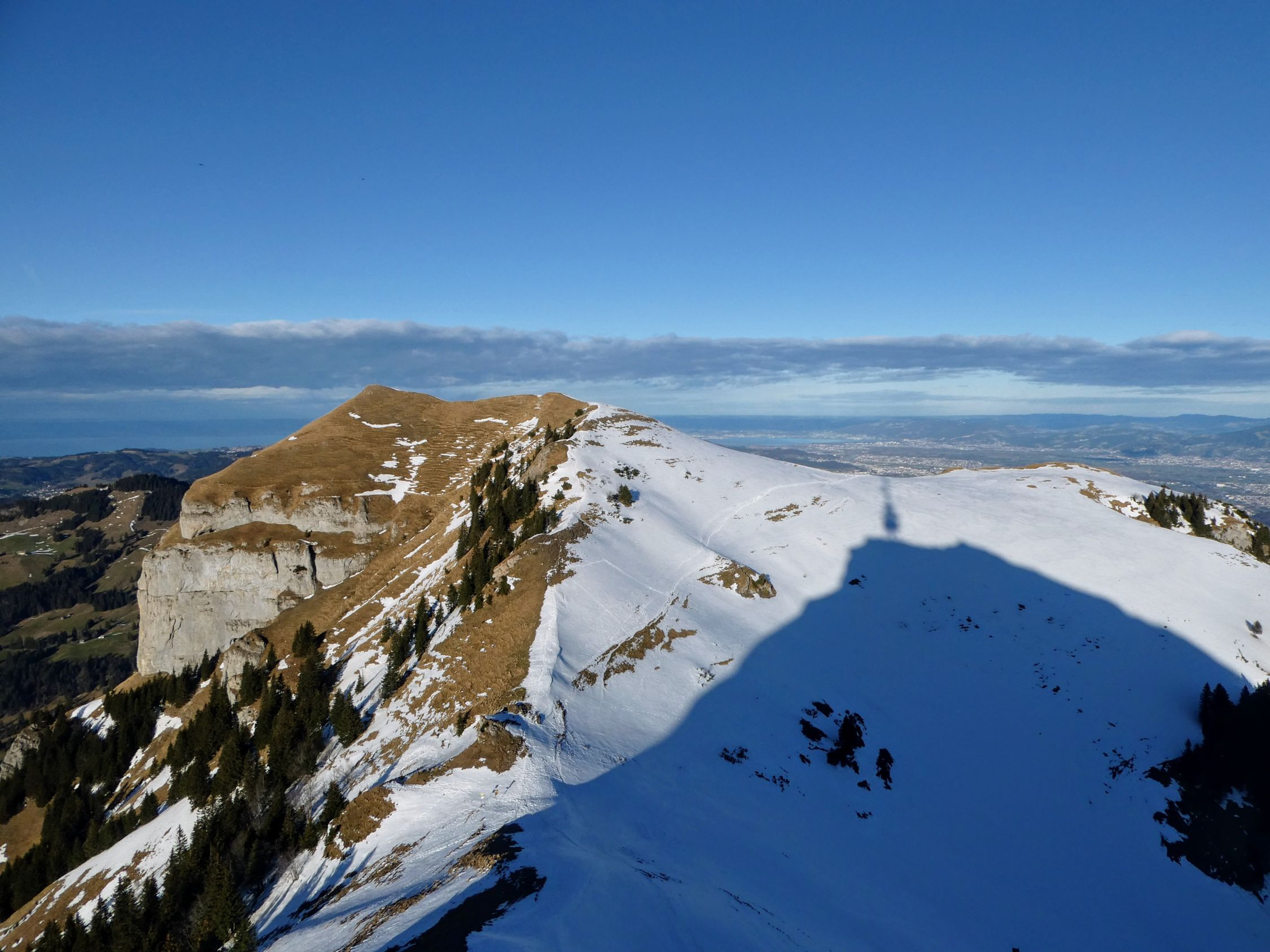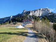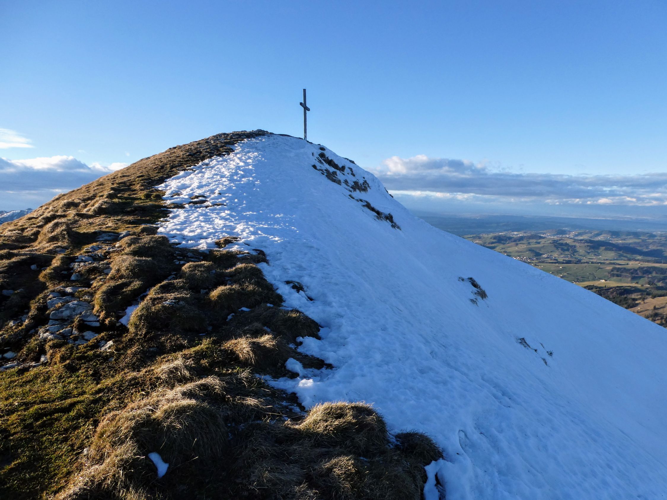 Der direkte Aufstieg über das Chatzetöpli zum Hohen Kasten ist ebenfalls stark vereist und die Stahlseile liegen z.T. im Schnee. Hier sind also auch Steigeisen und Vorsicht gefragt.