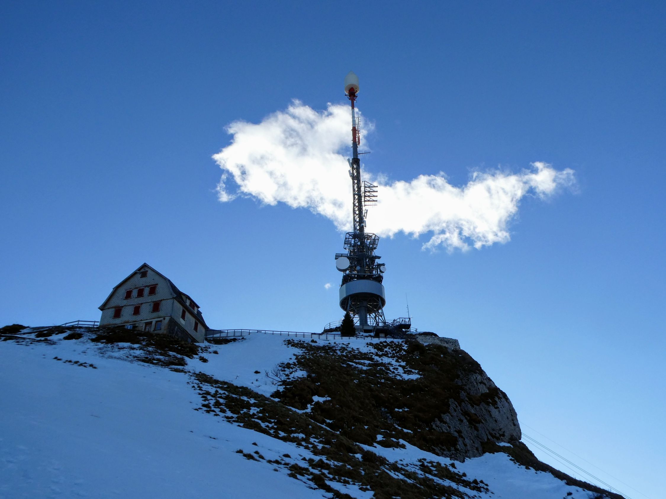 Nachmittagstour mit Start um ca.13.30 bei 9° und überraschend schönem Wetter mit starkem Wind. Im Gipfelbereich Sturm. Deshalb waren heute Luftseilbahn und Drehrestaurant geschlossen.