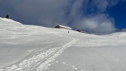 - Abfahrt: oben hart, ab ca. 1750 m dünne Schneeauflage; Schneeaufbau hat gehalten (kein Bruchharsch), retour über die Passstrasse
