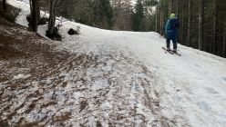 - Aufstieg ab Bad Laterns über die Passstrasse: Schnee nass und pappig, teils mit vielen Tannennadeln und Äste überdeckt