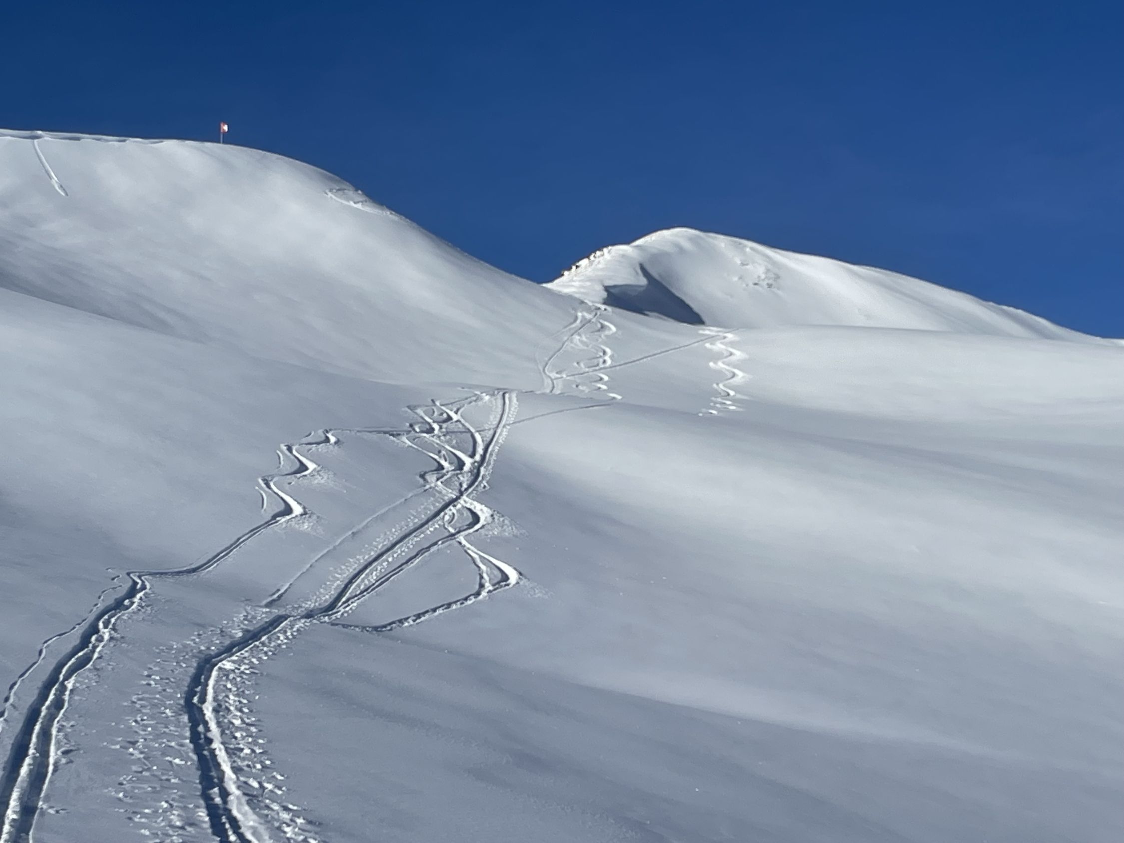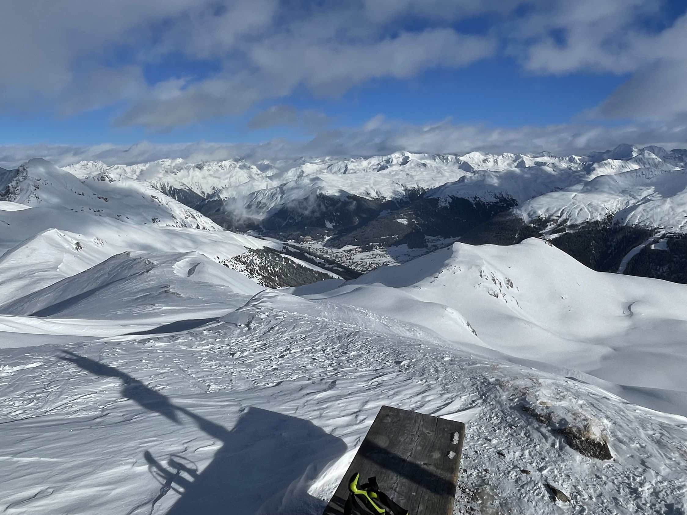 Von Davos Frauenkirch der Schneeschuhroute nach durch den Wald (keine Steine) bis Stafelalp. Dann weiter via Hütte bis zum Gipel. Oben etwas abgeblasen ansonsten schöner Pulverschnee von oben bis unten. Feine Wähe in der Stafelalp.
