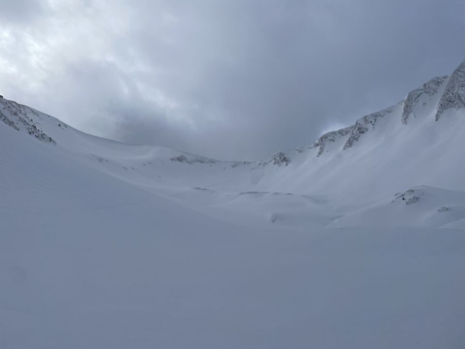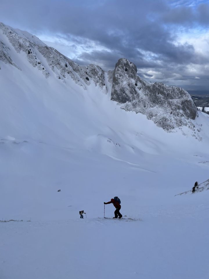 Wir haben dann den Grat Richtung Talmattespitz traversiert und sind, sobald die Einfahrt nicht mehr über 30° war, in den Chessel runtergefahren. Von da wieder hoch auf den Schibespitz und dann zurück Richtung Untere Gantrischhütte abgefahren.