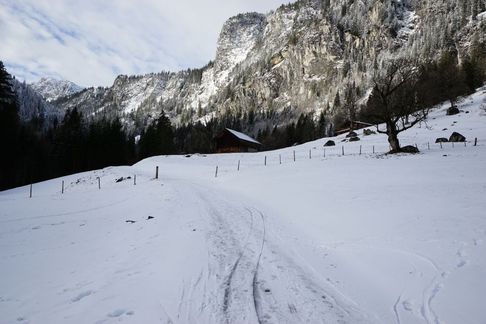 Oben Windharstig und mit genügend Tempo gut zu fahren. Unterhalb Chüewald dann vermehrt nasser Pulver sehr gut fahbar. Alpstrasse Pisten ähnlich.