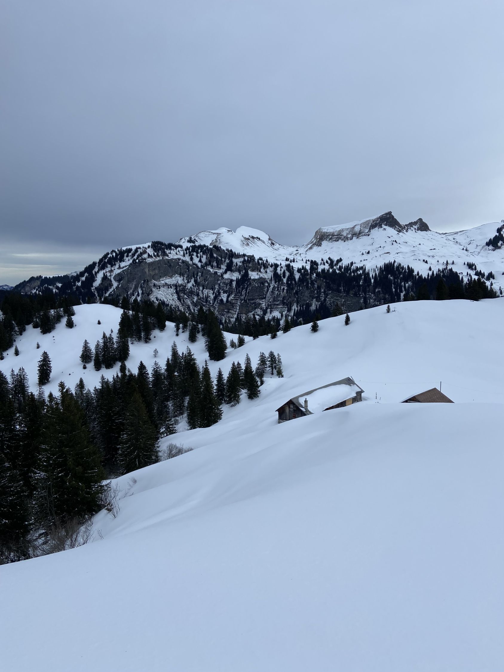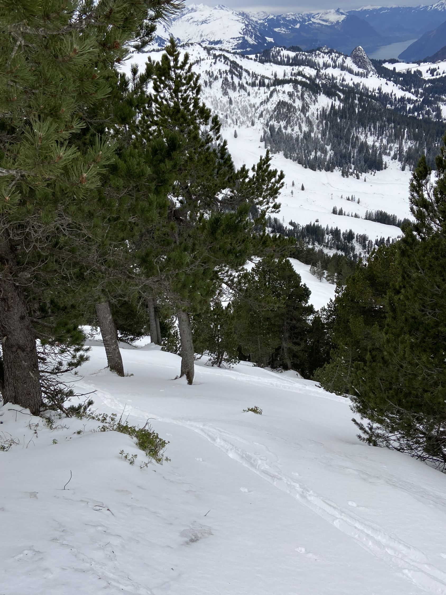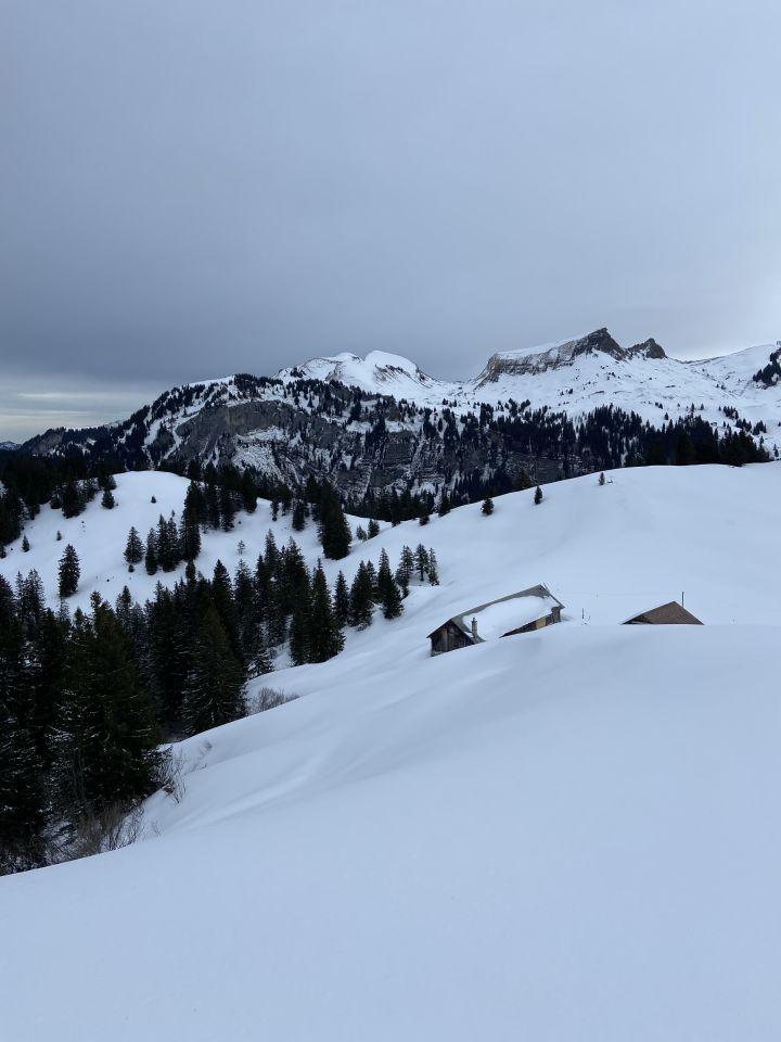 Es hat geeerade so genug Schnee auf der Piste um bis zum Parkplatz Oberiberg aufzusteigen und abzufahren. Dann ab 1200Hm kleine Neuschneeablage. Steilstufe gut, und nur unten kurz schneefrei. Heute ging es mit den Skiern bis zum Gipfel, was nicht immer geht. Abfahrt zur Abwechslung über die Ostflanke nach Roggenegg. Schön steil und unberührter Neuschnee. Allgemein kann man beobachten dass der Wind viel wenig Einfluss in diesem Bereich / in dieser Höhenlage hatte. Bei Tubenmoos kurz wieder angefellt und über Normalroute runter. Der Roggenstock ist mit seinen vielen tollen Abfahrtsvarianten (NW Normaloute, Nordwand, Ostflanke, Südrippe) einfach immer einen Besuch Wert.