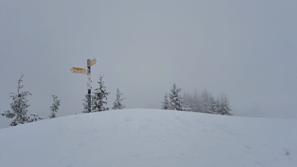 Die Unterlage krazte noch etwas bei der Abfahrt, aber nicht störend. Ganztags bescheidene Sicht, aber immerhin Neuschnee :)
