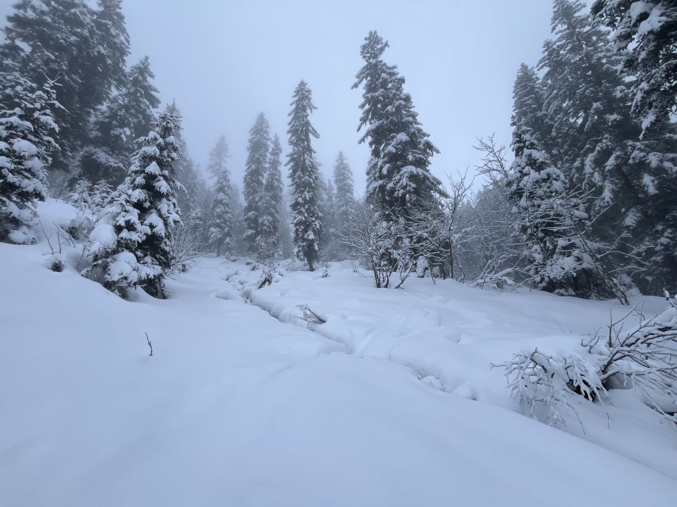 Start in der Hubelmatte. Ca. 5cm Neuschnee. Ab Pörishüttli schlechte Sicht. Dafür super Pulver und kalt.