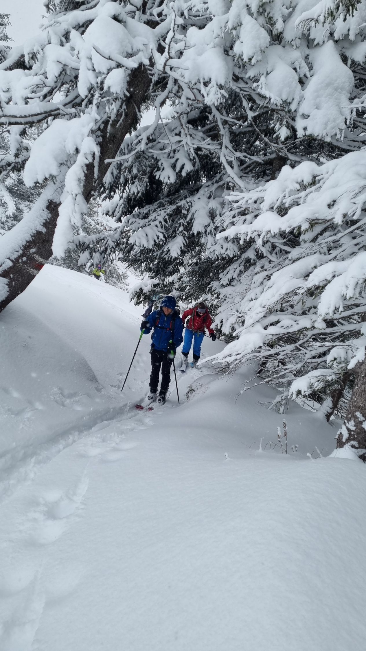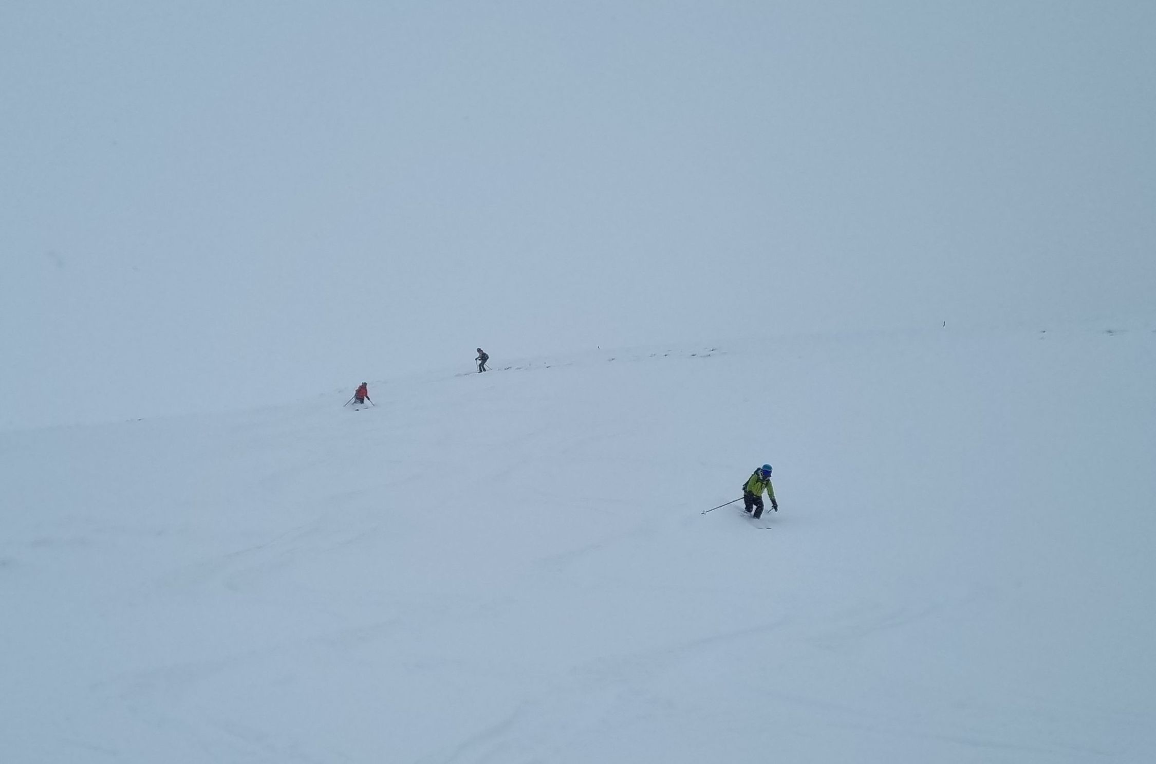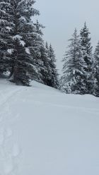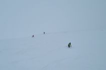 Schneefall während der ganzen Tour, ca. 15cm Neuschnee auf harter Unterlage (gefrorener Nassschnee). Viel weniger Kalt als erwartet. Nebel oberhalb des Berghuis Schönbüel, darunter ganz passable Sicht. Dank Neuschnee trotz Whiteout auch ganz oben ordentlich fahrbar, darunter kam sogar richtig Fahrspass auf.