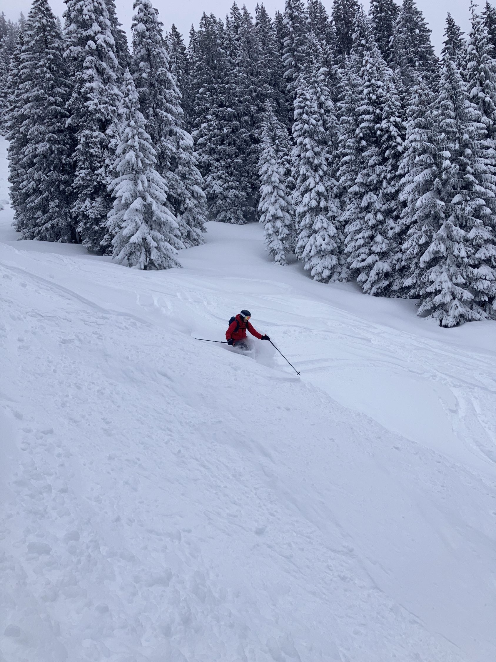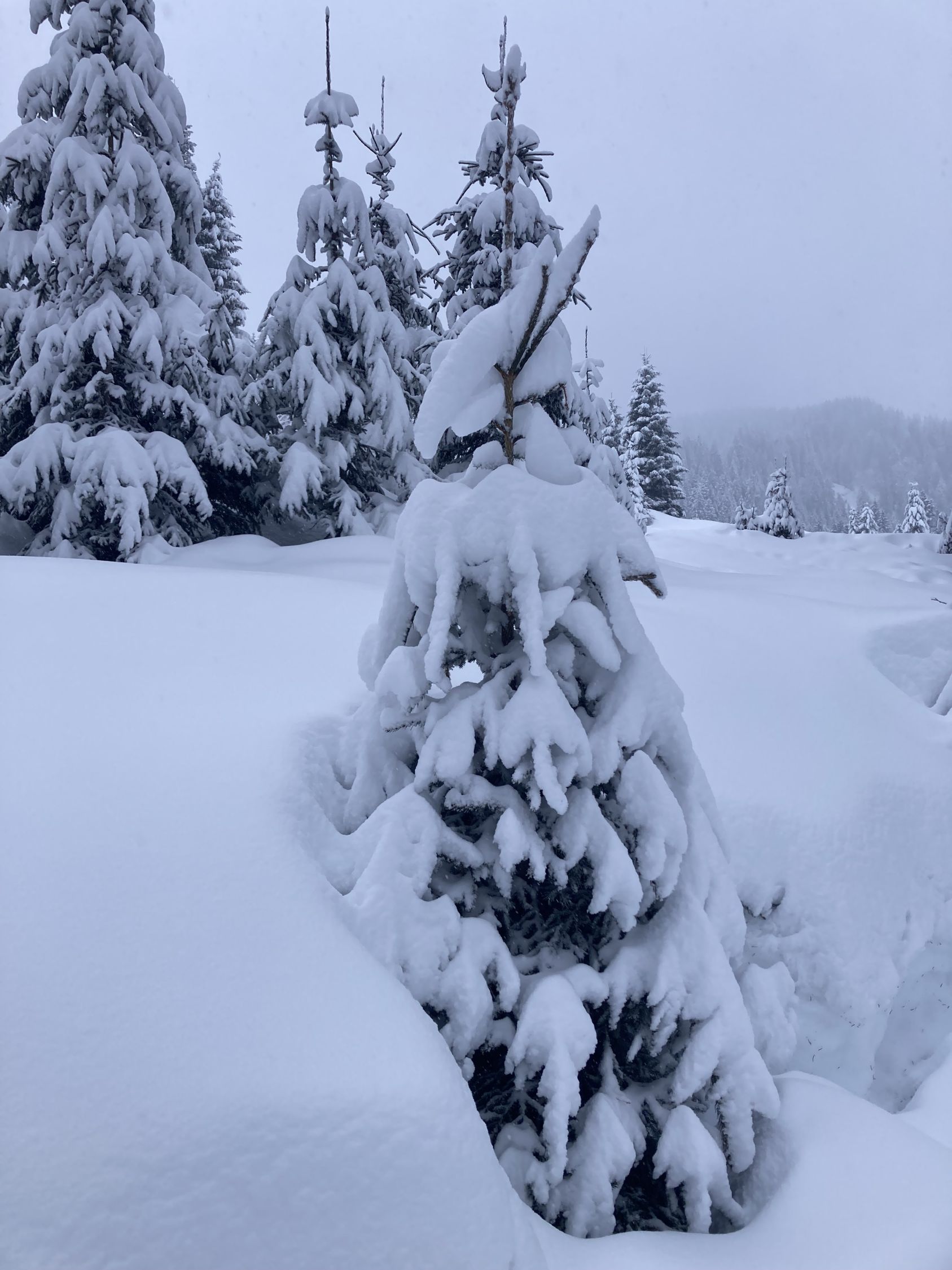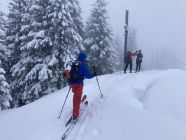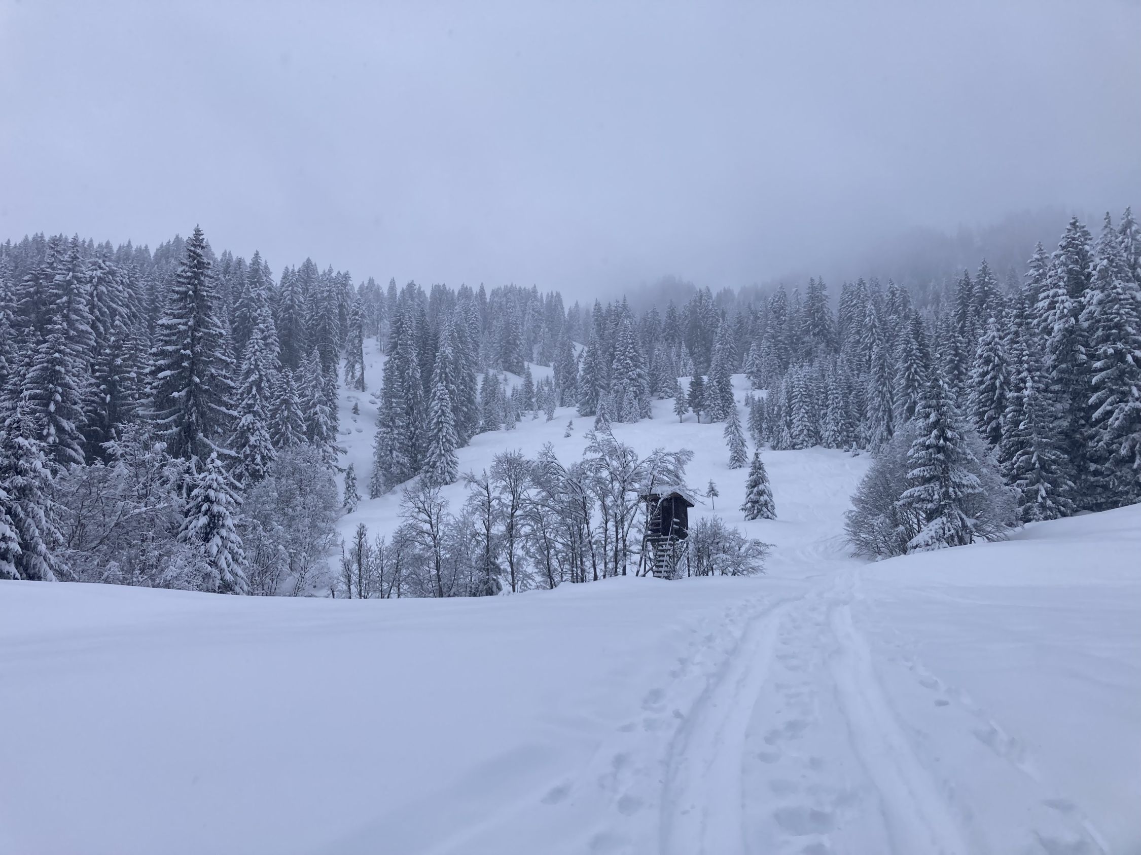 Ca 30cm frischer und lockerer Pulverschnee aus den letzten 48h auf harter und kompakter Unterlage. Aufstieg ab Parkplatz problemlos machbar. Bei der Abfahrt im unteren Teil nicht auf dem Forstweg der Wannenkopfhütte fahren sondern im Gelände bleiben. Dort kein Bodenkontakt, da überall ausreichend Grundlage. Die Grundlage ist sehr hart und eisig. Ausserdem hat es teilweise gemeine Bachläufe und Löcher im Untergrund. Aus diesem Grund etwas Vorsicht bei der Abfahrt und obacht geben. Ansonsten aber super schön mit dem lang ersehnten Neuschnee.