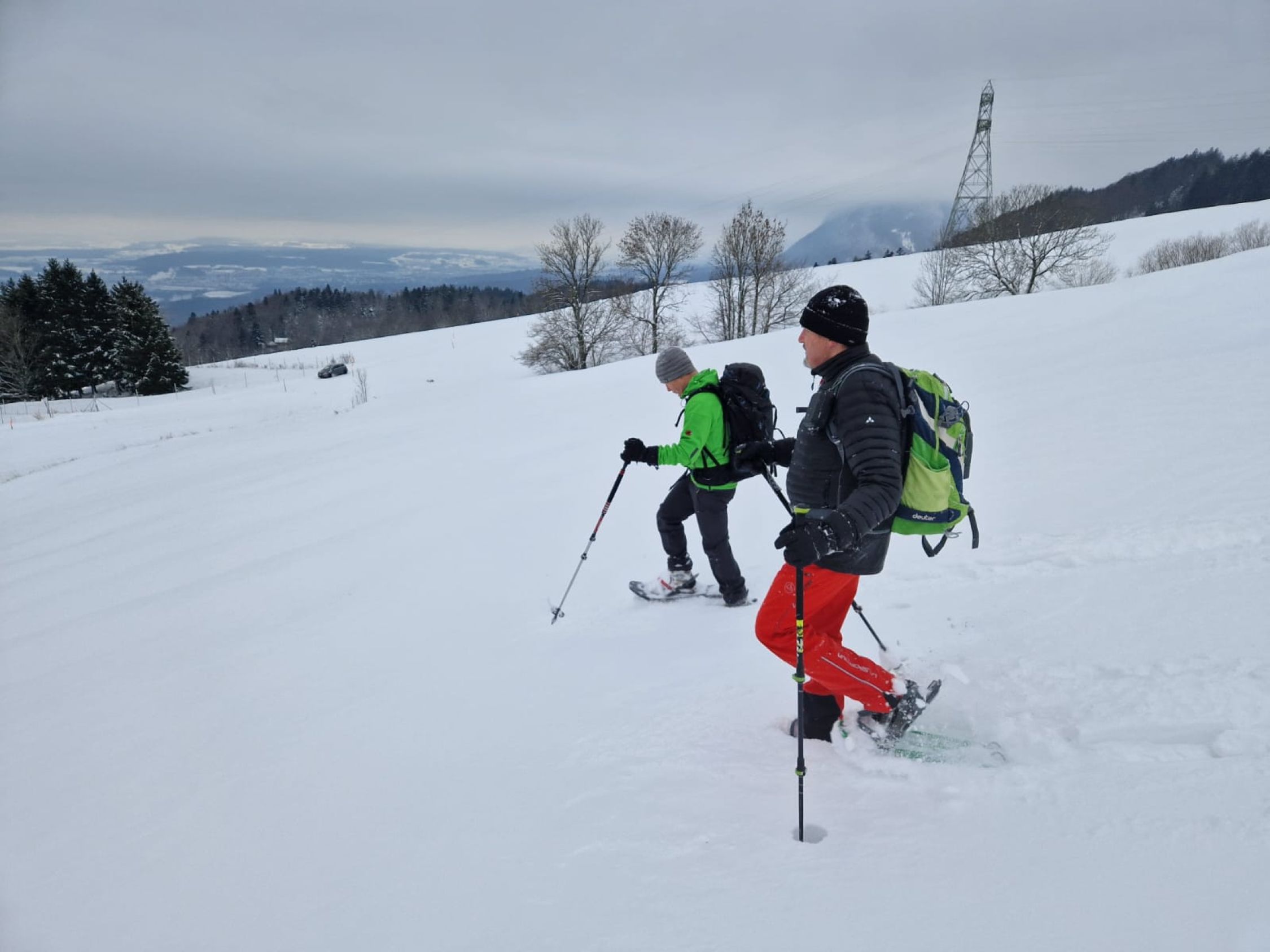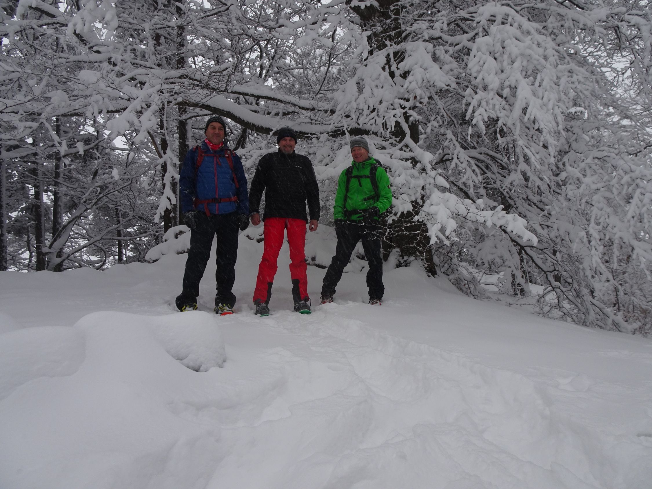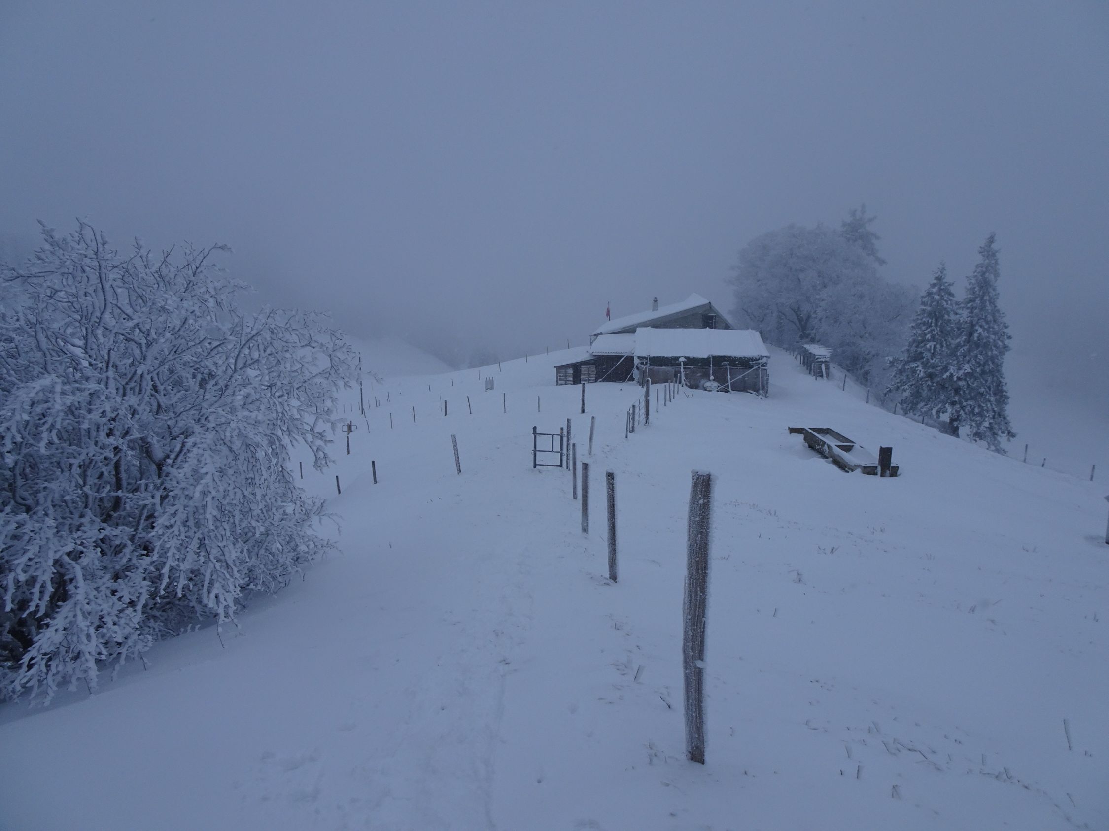 Beste Bedingungen für Schneeschuhe, zeitweise mässige Bise, Temperatur -7 Grad, bedeckt aber gute Sicht(bei Sonne wäre es ein 100%iges ausgezeichnet), zu Beginn noch leichter Schneefall später trocken