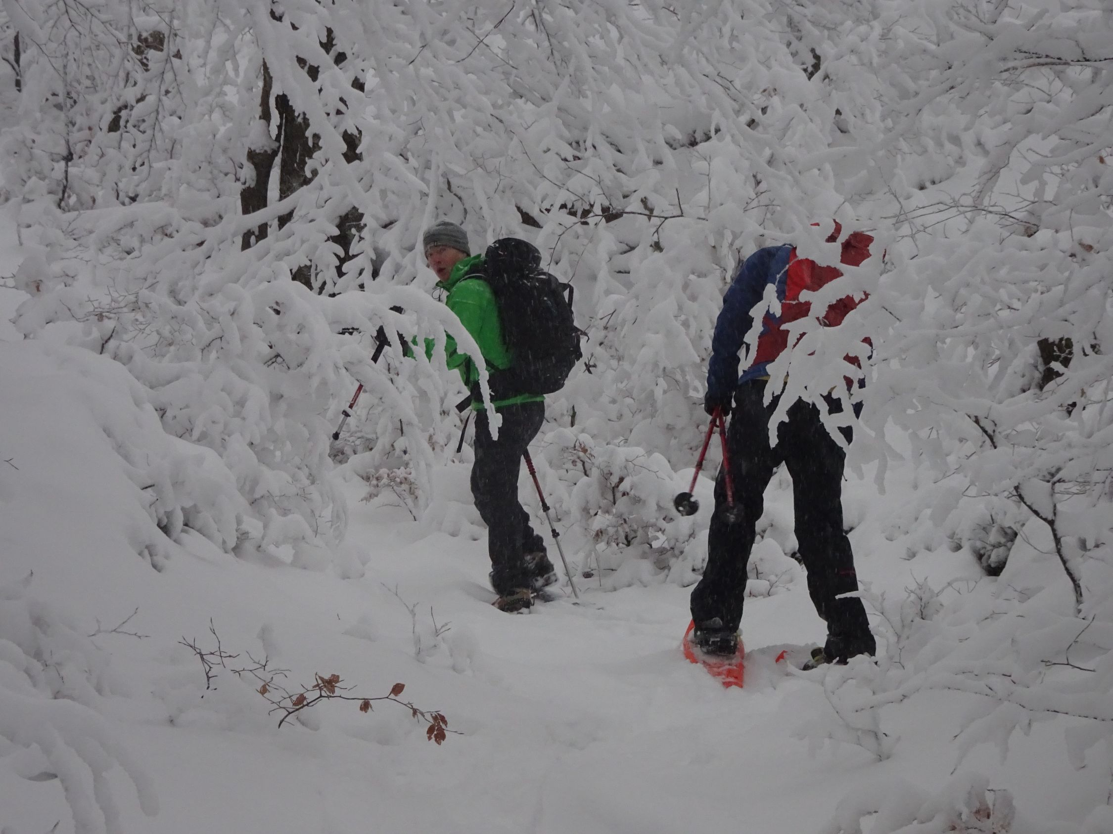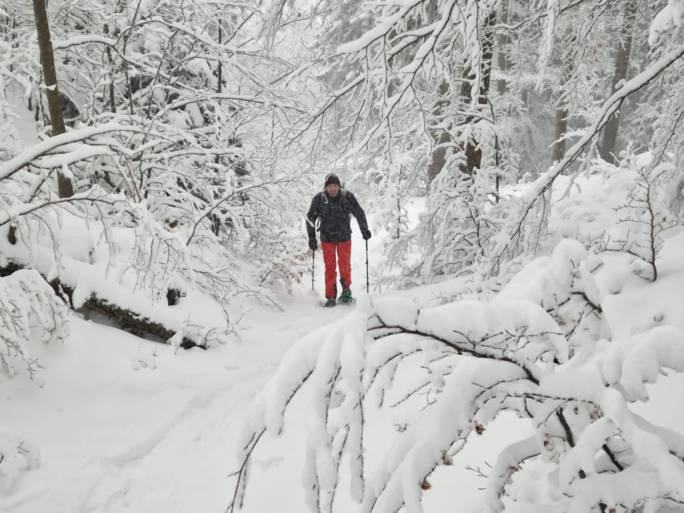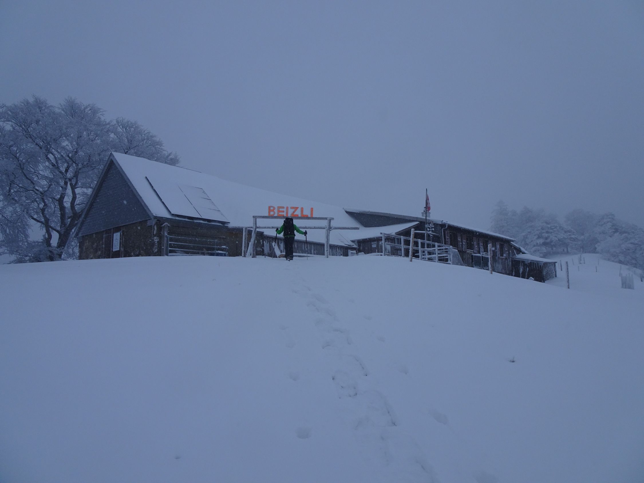 Beste Bedingungen für Schneeschuhe, zeitweise mässige Bise, Temperatur -7 Grad, bedeckt aber gute Sicht(bei Sonne wäre es ein 100%iges ausgezeichnet), zu Beginn noch leichter Schneefall später trocken