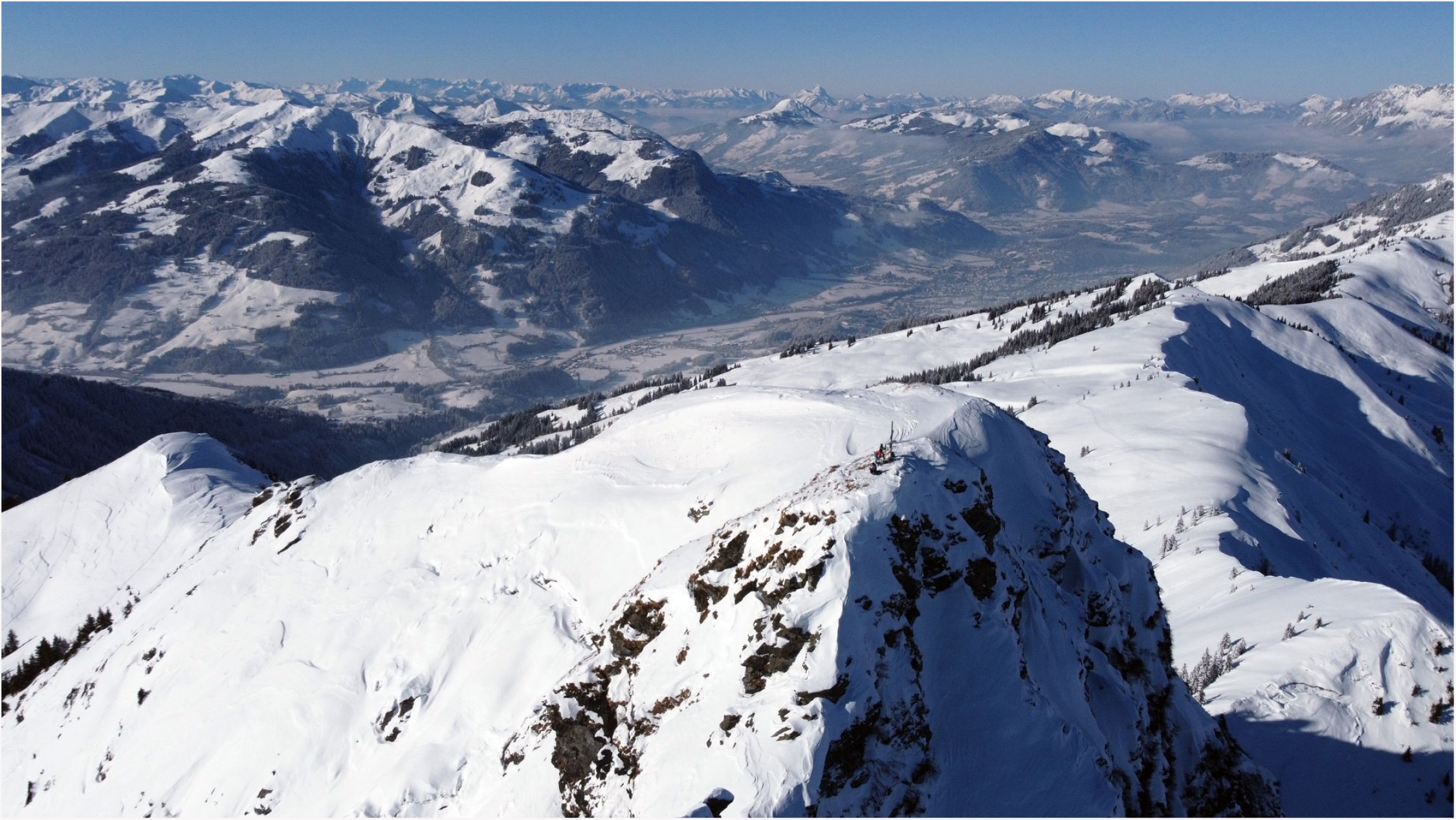 Der Wind hat ganze Arbeit geleistet, reichlich Schneebrettakivität, auch großräumig in vor allem in Hangausrichtung SW.
