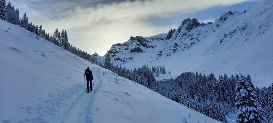 Top Bedingungen mit Pulver von oben bis unten. Aufstieg über die Normalroute ab dem Parkplatz mit Ski möglich. Spur durch den Wald etwas mühsam aber gut zu machen. An den sonnenexponierten Hängen schon etwas schwerer Schnee und im unteren Bereich mit leichtem Deckel.