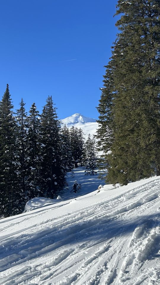 Schneebedeck von oben bis unten, durchgehnd gute Spur, toller Pulver und traumhaftes Wetter.