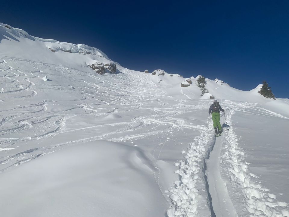 Der Gipfelhang allerdings eher Murks. Der Rest super. Noch hats Platz für eigene Spuren...obwohl heute einige Leute unterwegs waren.