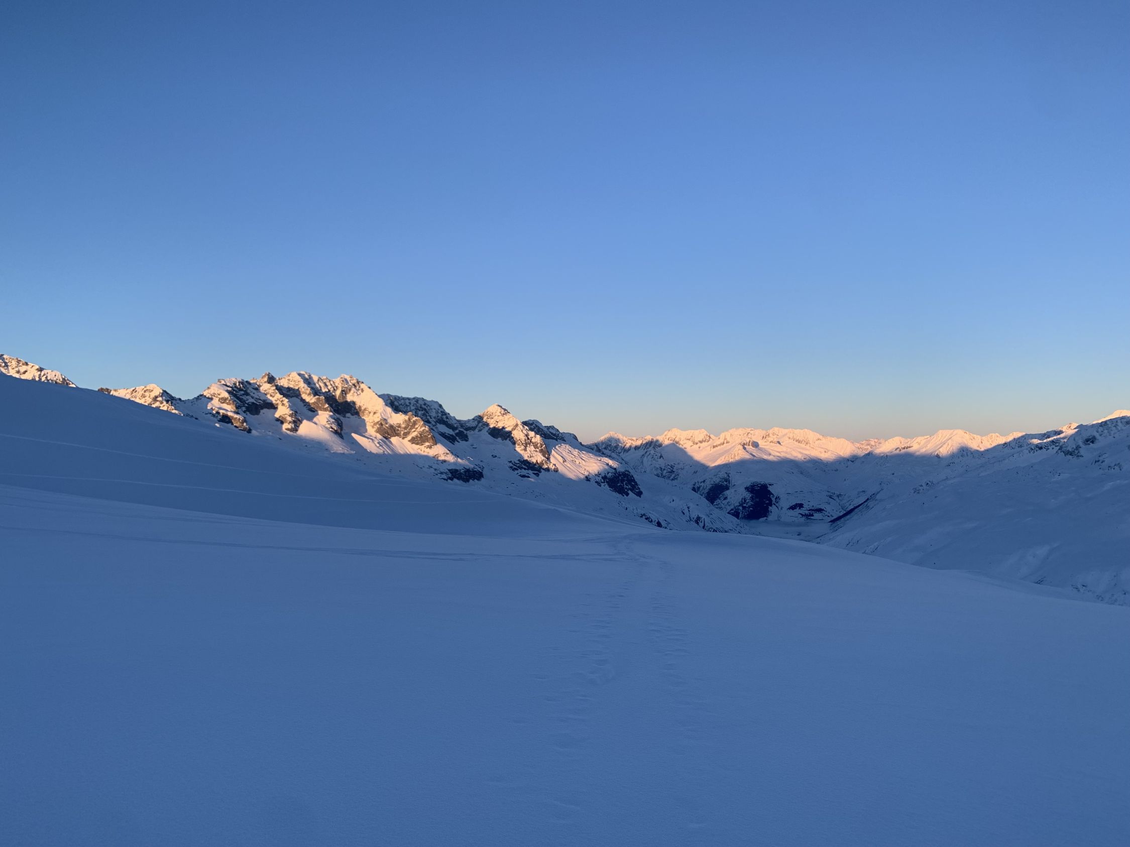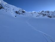 Start Realp 8 Uhr bei -8 Grad. Praktisch auf gesamter Route 20 cm Neuschnee auf tragender Unterlage. In der Sonne warm, im Schatten frostig kalt. Spur bis unterhalb Rotondohütte, restliche Runde selbst gespurt. Eine Person im Aufstieg zum Leckihorn getroffen (hoffe, es lief noch gut), sonst allein auf weiter Flur. Gelände unverspurt, jungfräulich (erst in der Abfahrt vom Stotzigen Firsten wieder Abfahrtsspuren, dort aber immer noch gut zu fahren).