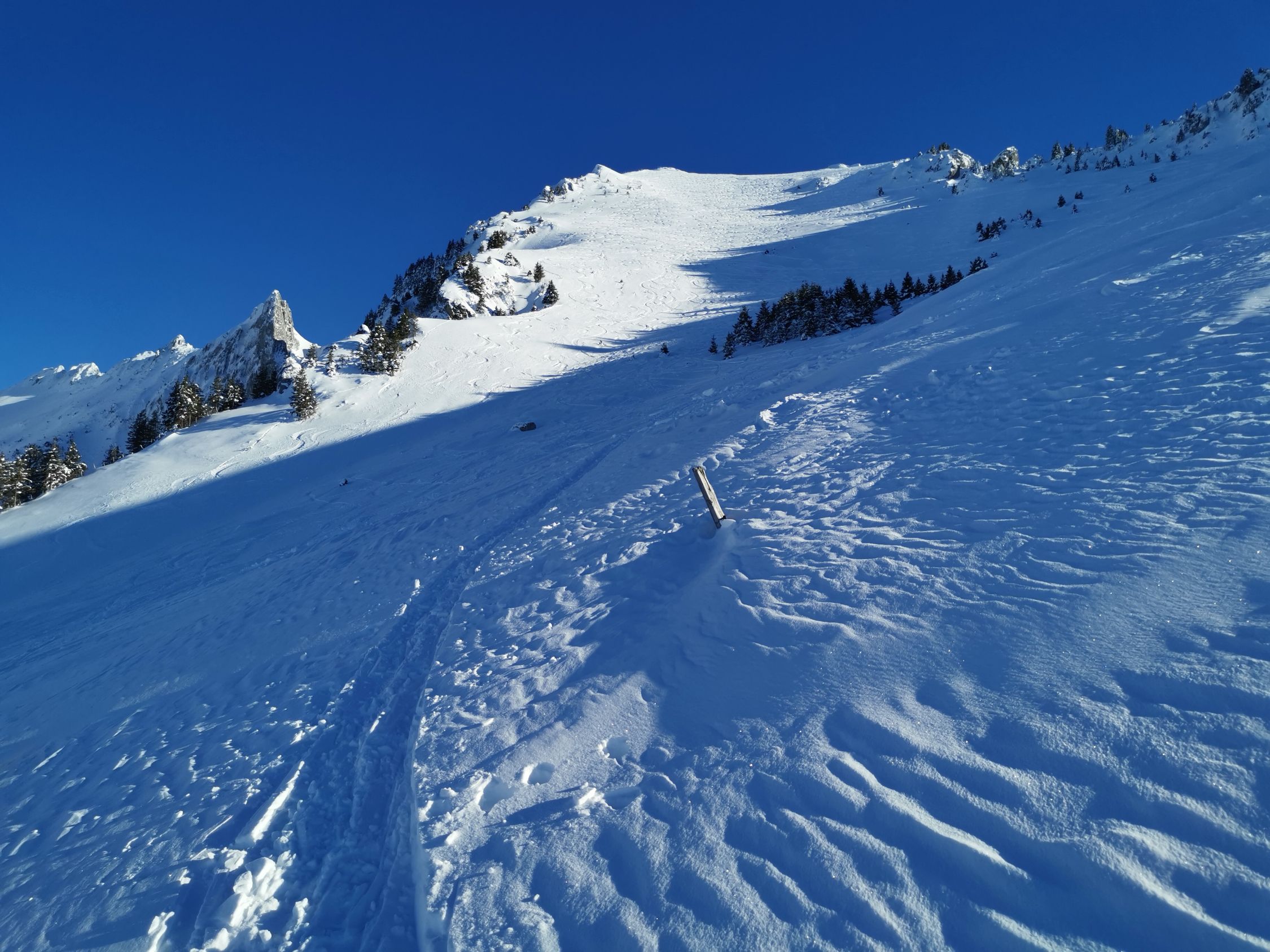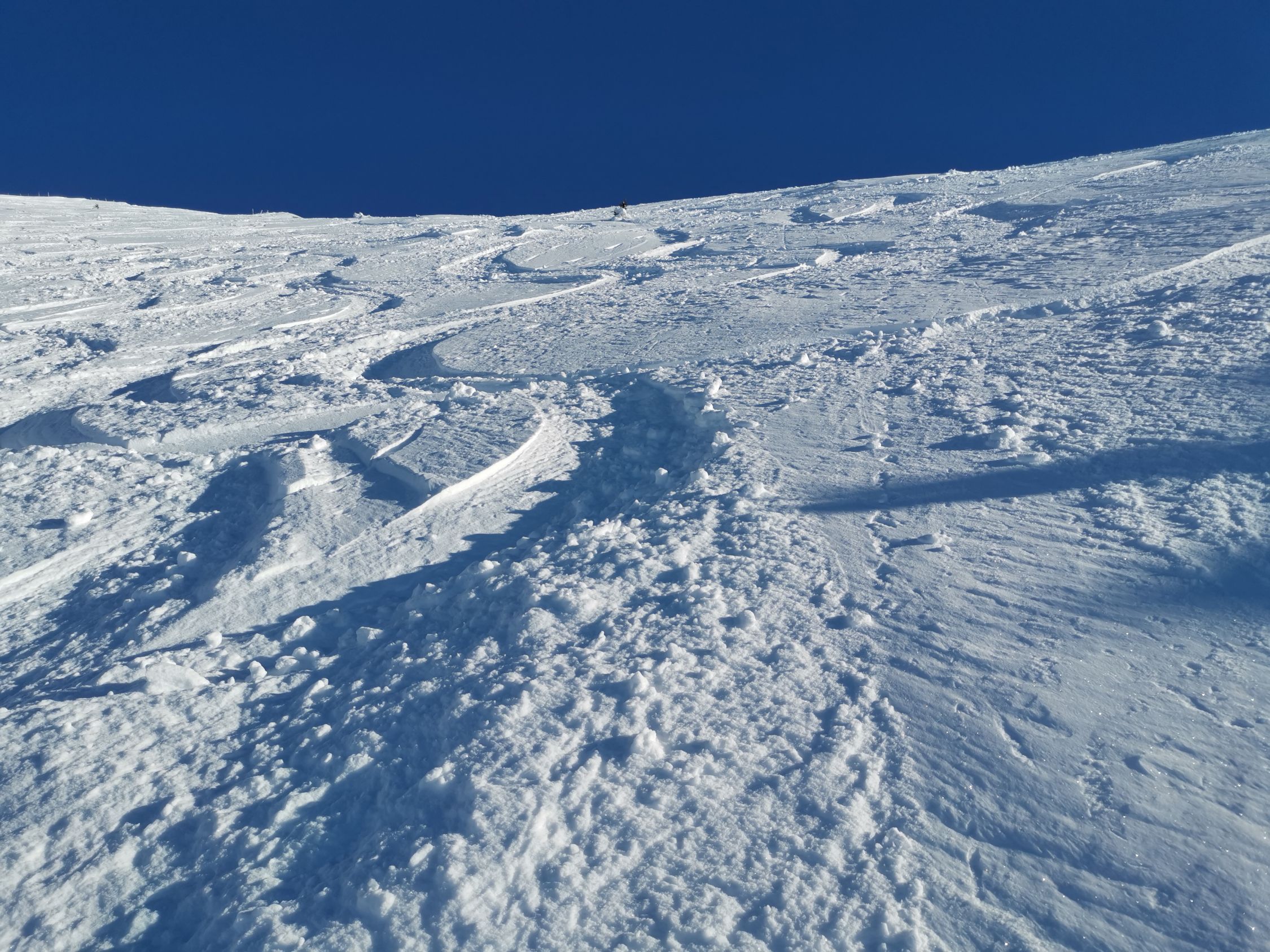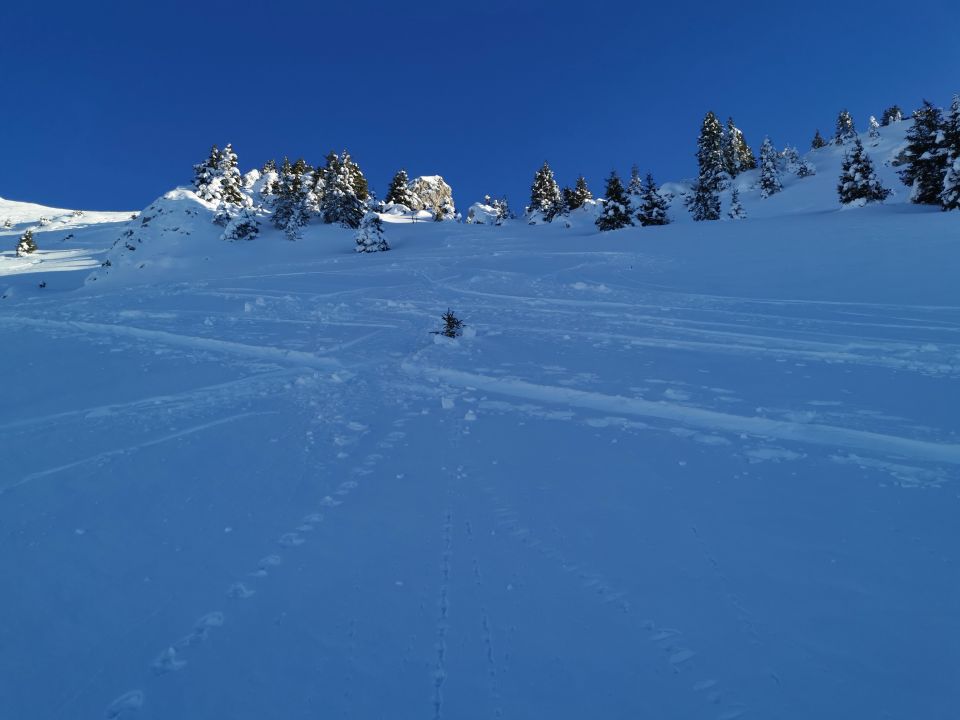 An den sonnenexponierten Hängen bildet sich langsam ein Deckel, unten fehlt teilweise etwas Unterlage für eine offensivere Fahrweise.