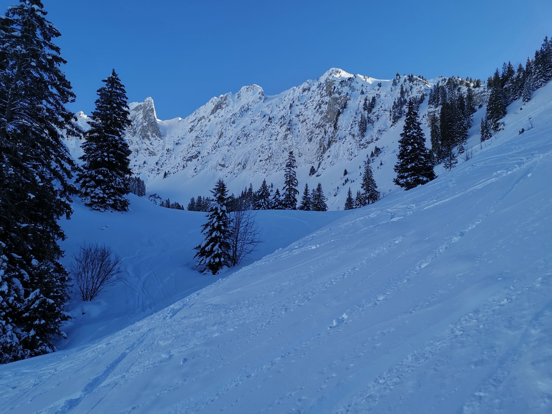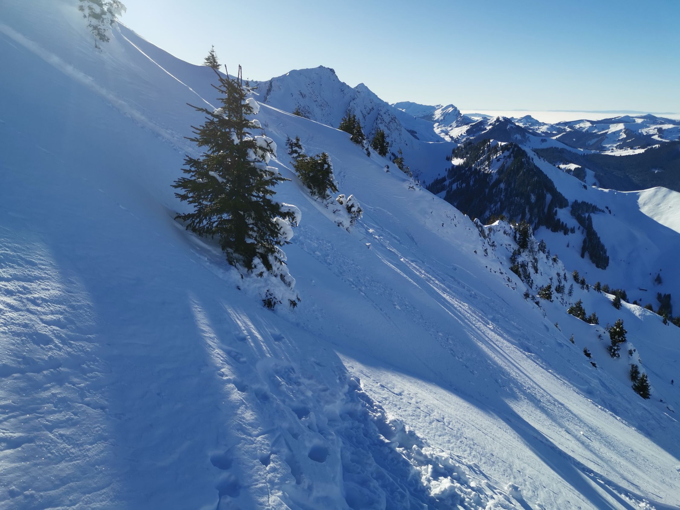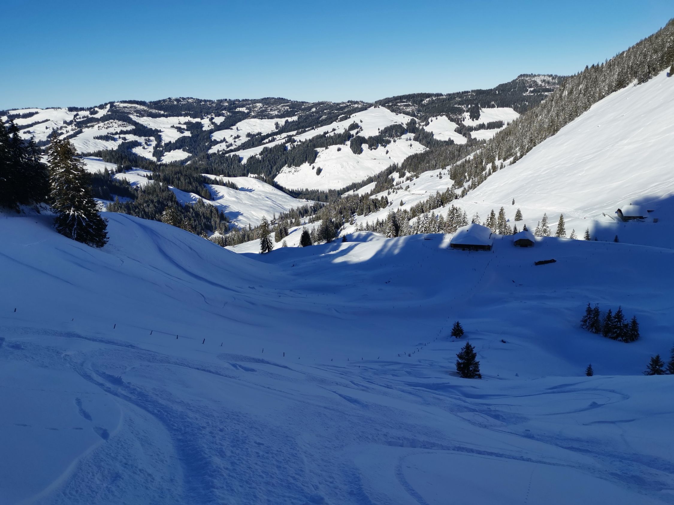 An den sonnenexponierten Hängen bildet sich langsam ein Deckel, unten fehlt teilweise etwas Unterlage für eine offensivere Fahrweise.