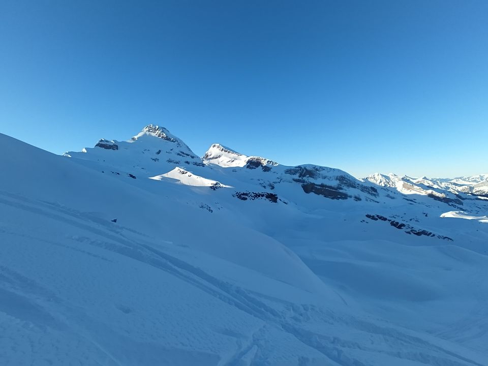 In den schattigen Mulden unterhalb des Chaiserstock war noch Pulvergut. Die Abfahrt bis unterhalb Schnüerstock teilweise recht ruppig mit Winddeckel. Nach Alt Stafel ist dann alles bereits vollständig zerfahren. Unverfahrenes Gelände gibts noch östlich des Chaiserstock Richtung Chronenstock und Blüemberg.
